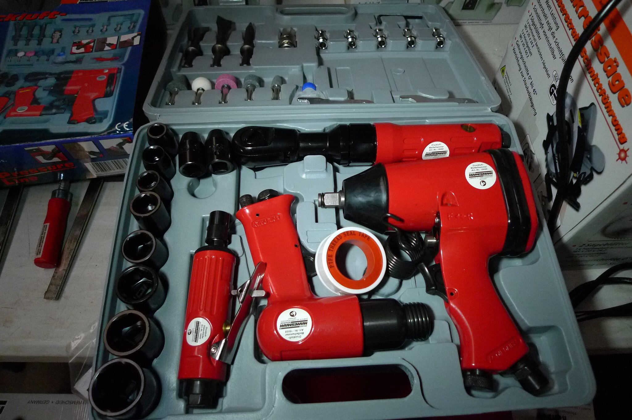 295. 33 dele trykluftsværktøj i kuffert, Mannesmann