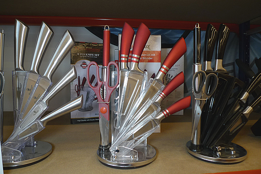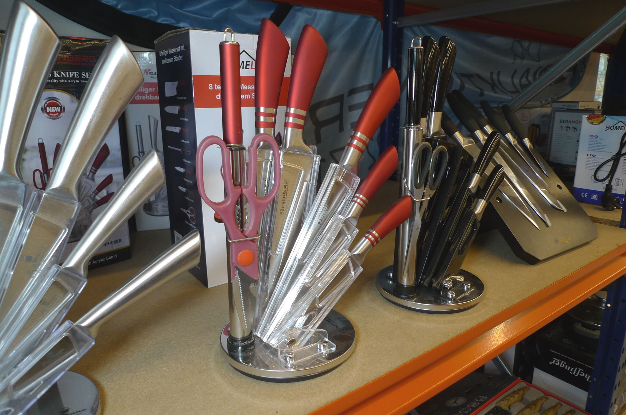 470. 8 dele knivsæt i blok på drejefod, Homolux