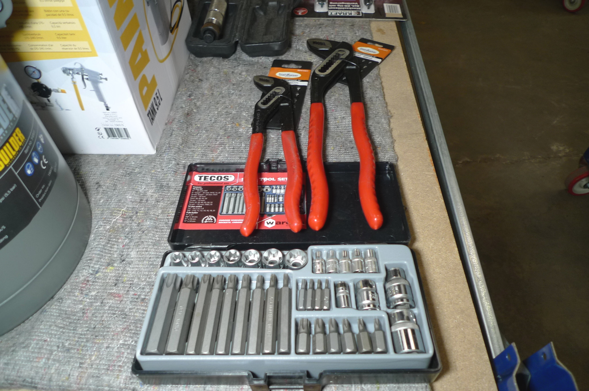 2 stk. vandpumpetænger 300 og 400mm. Torx toppe- og bitssæt, Tecos. Ubrugt.