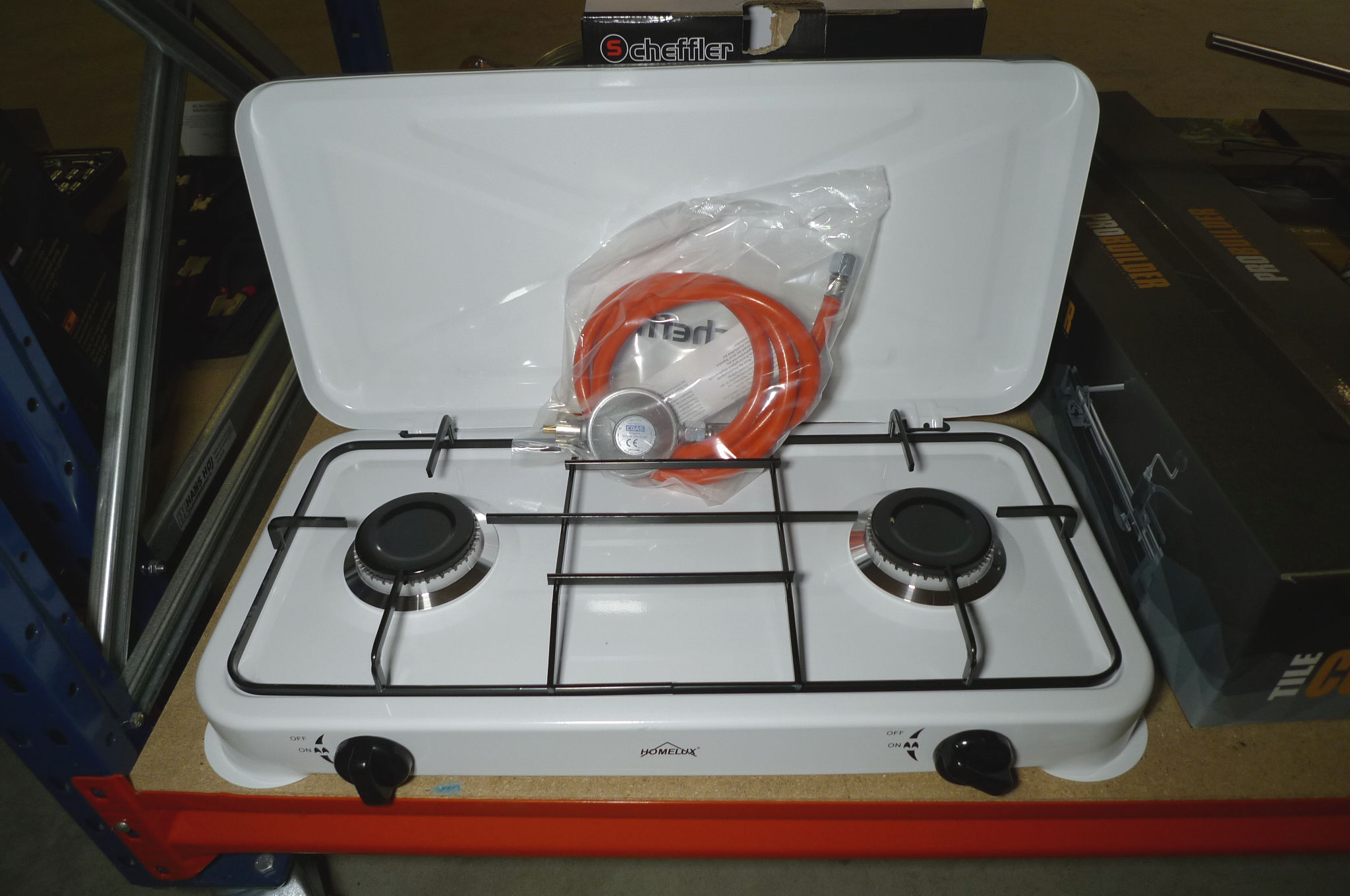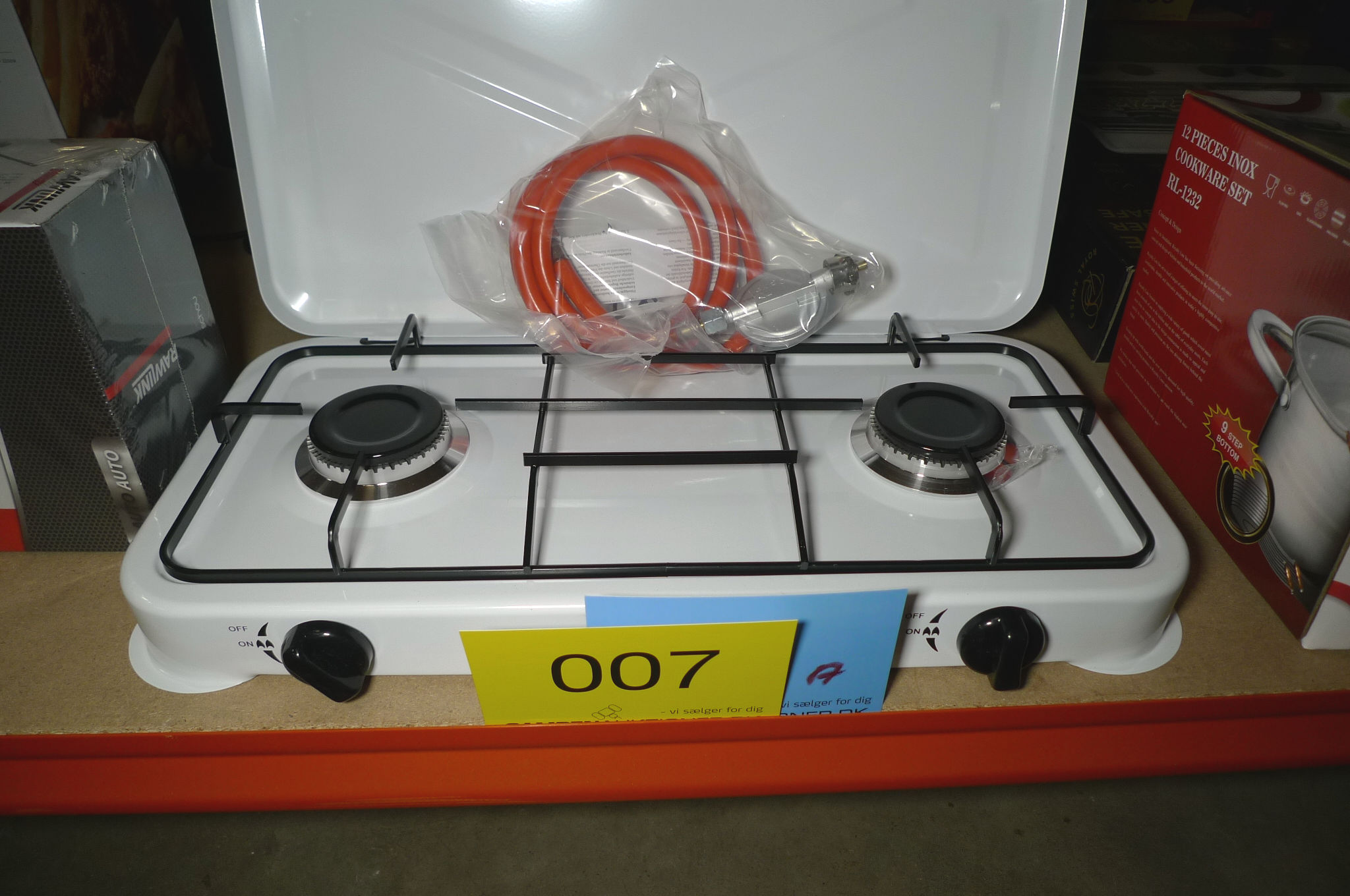 Transportabelt dobbelt gasblus m/gasslange. Ubrugt.