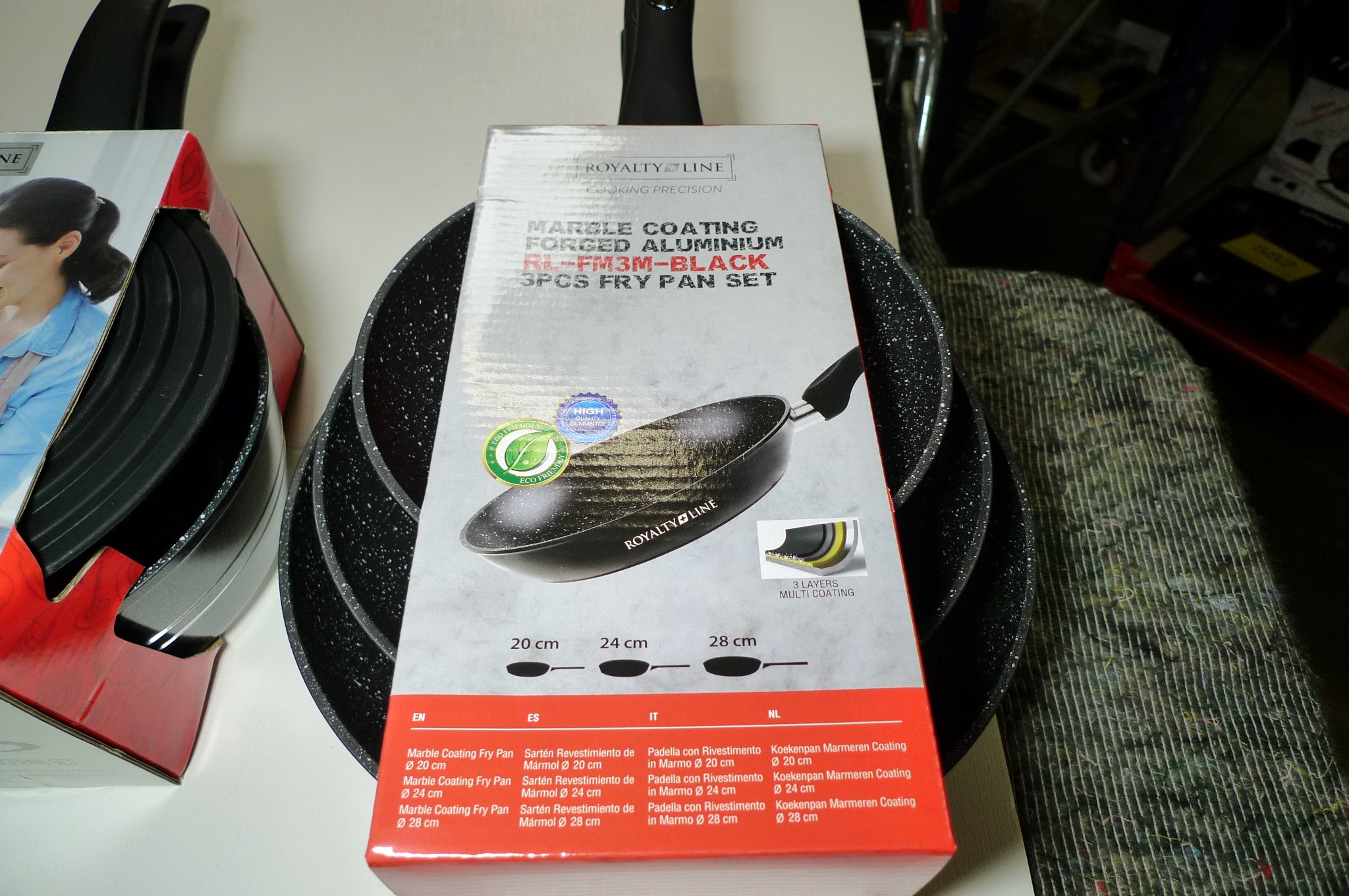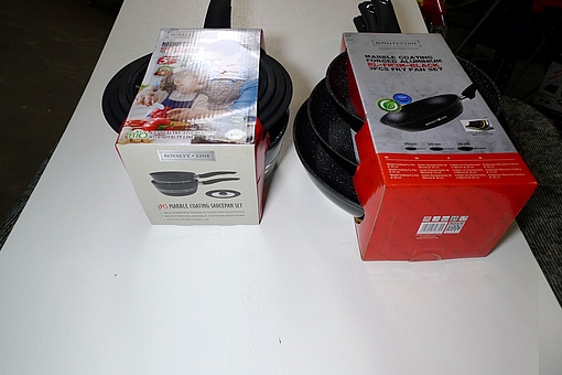 3 stk. stegepander + 2 stk. kasseroller m/multilåg. Ubrugt.