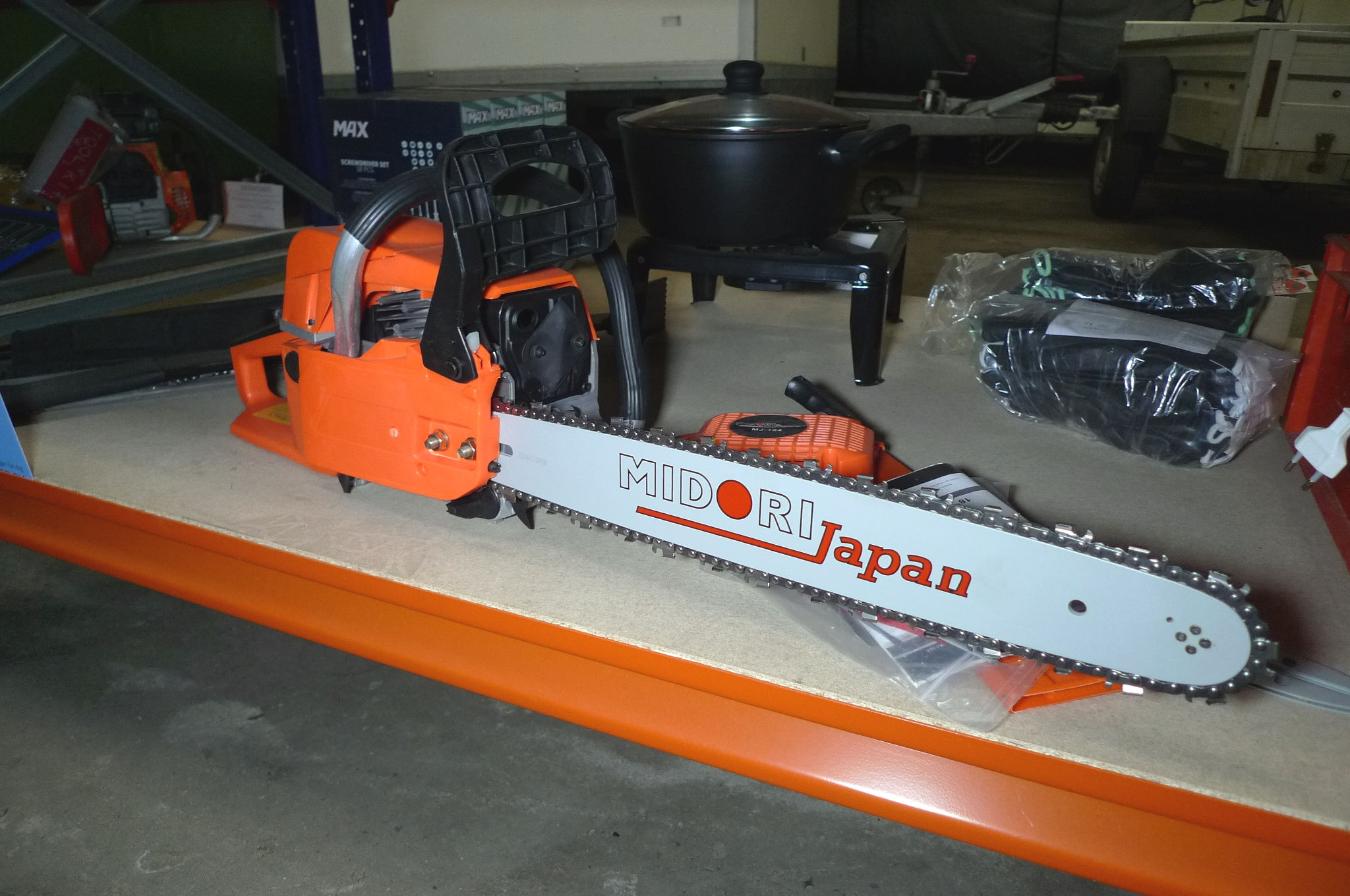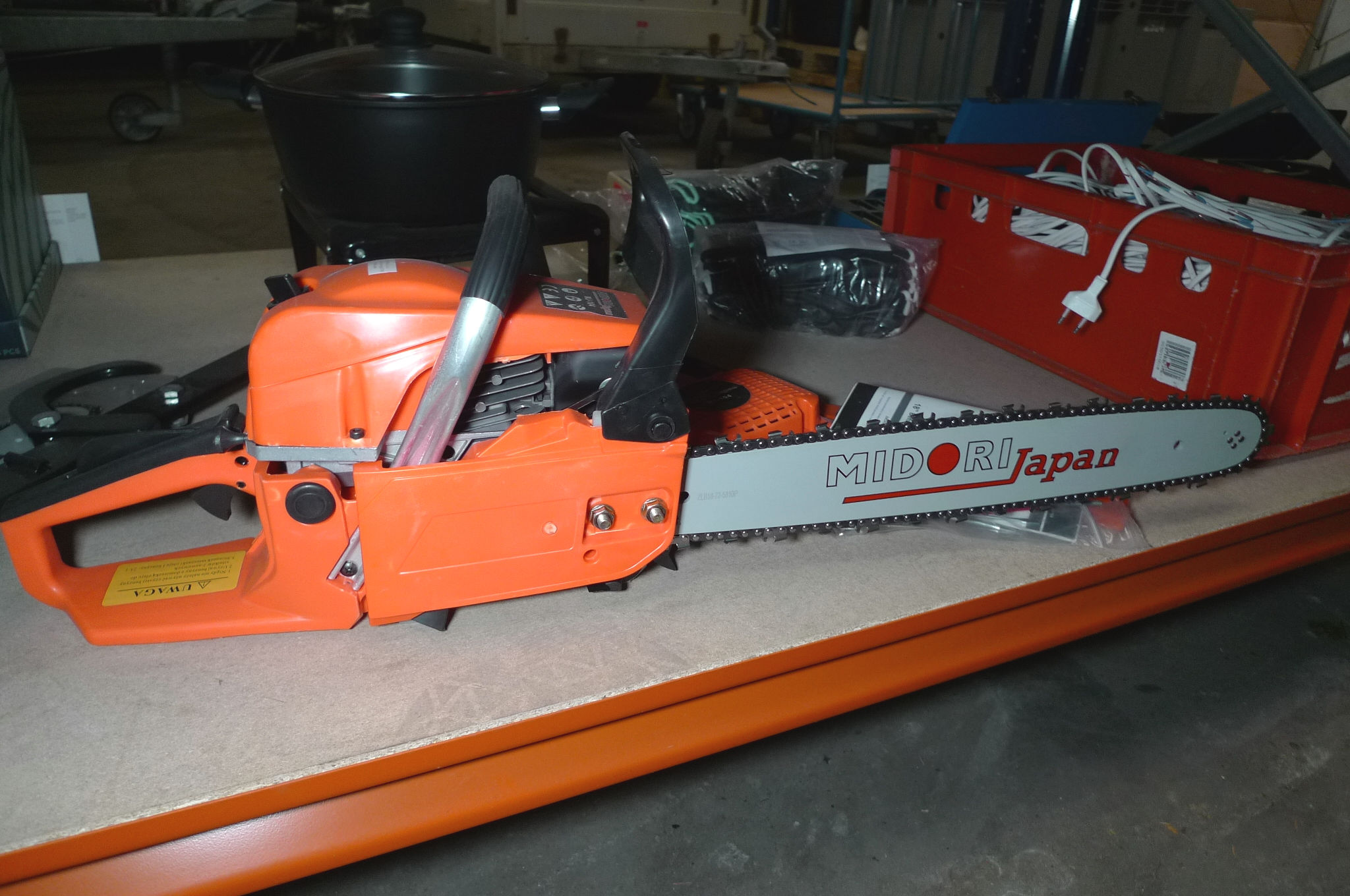 Motorsav benzin, Midori Japan ca. 45cm sværd. Ubrugt.