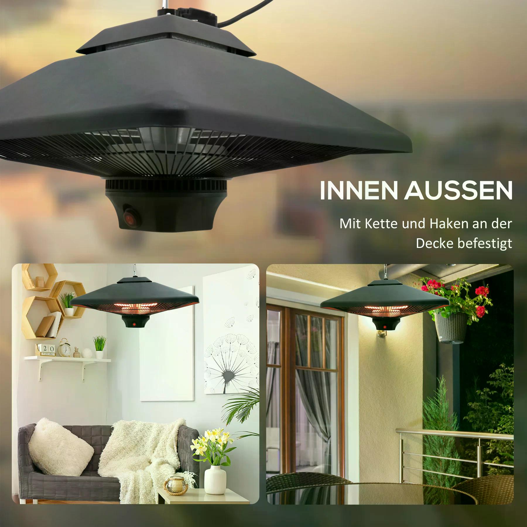 Infrarød terrassevarmer 2000W med fjernbetjening, LED-display og 2 varmeindstillinger – sort