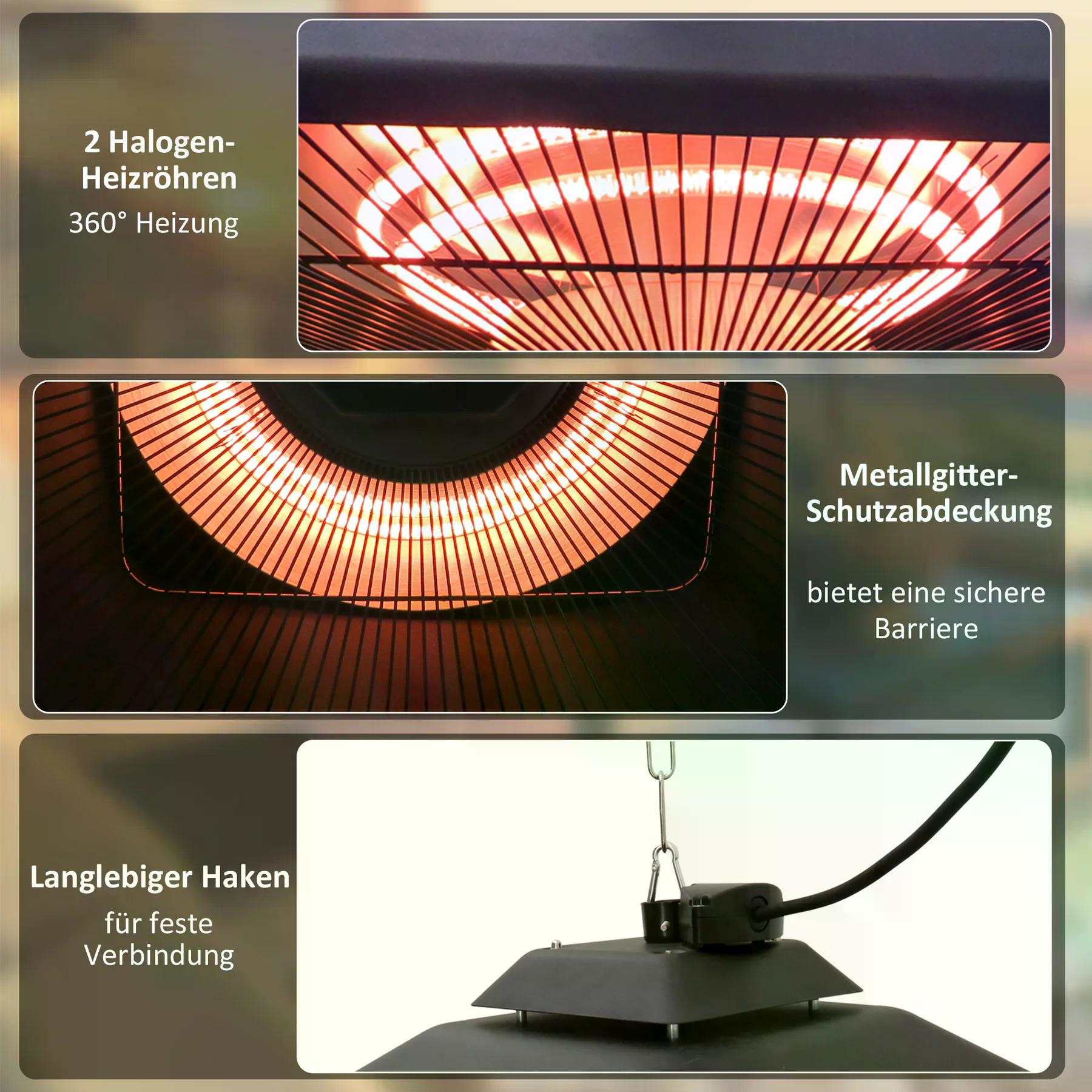 - Giver varme og lys gennem 2 halogenrør