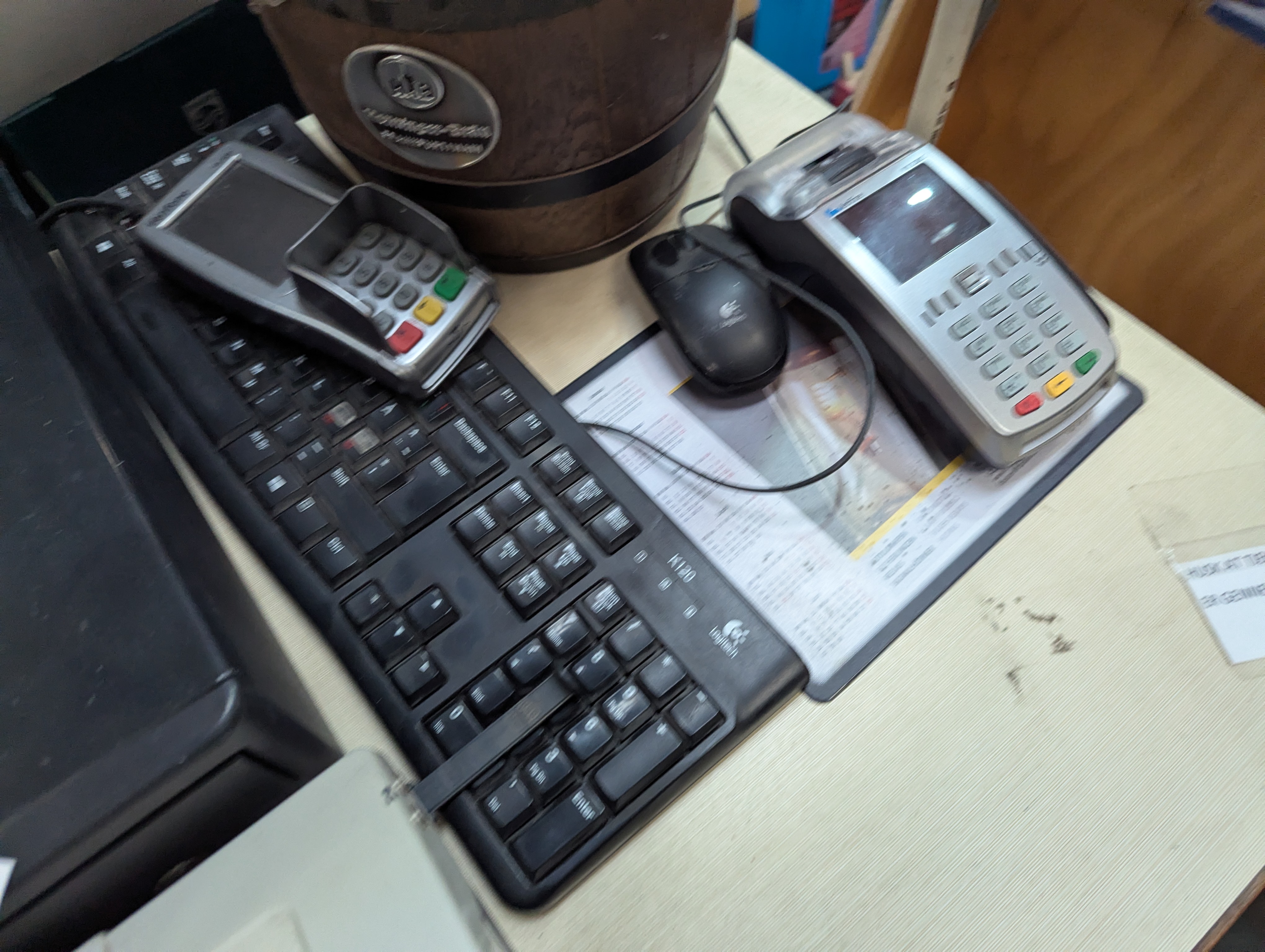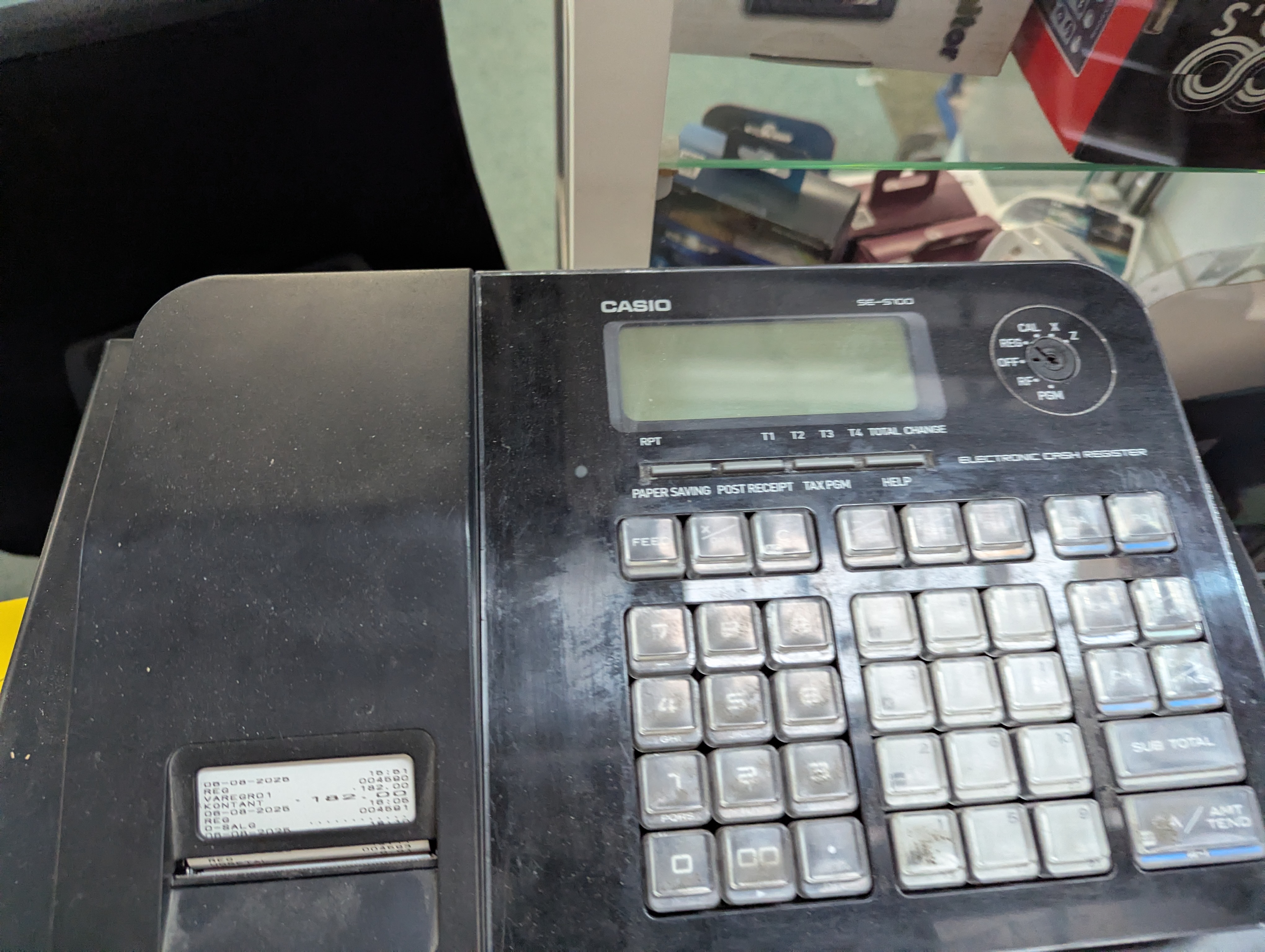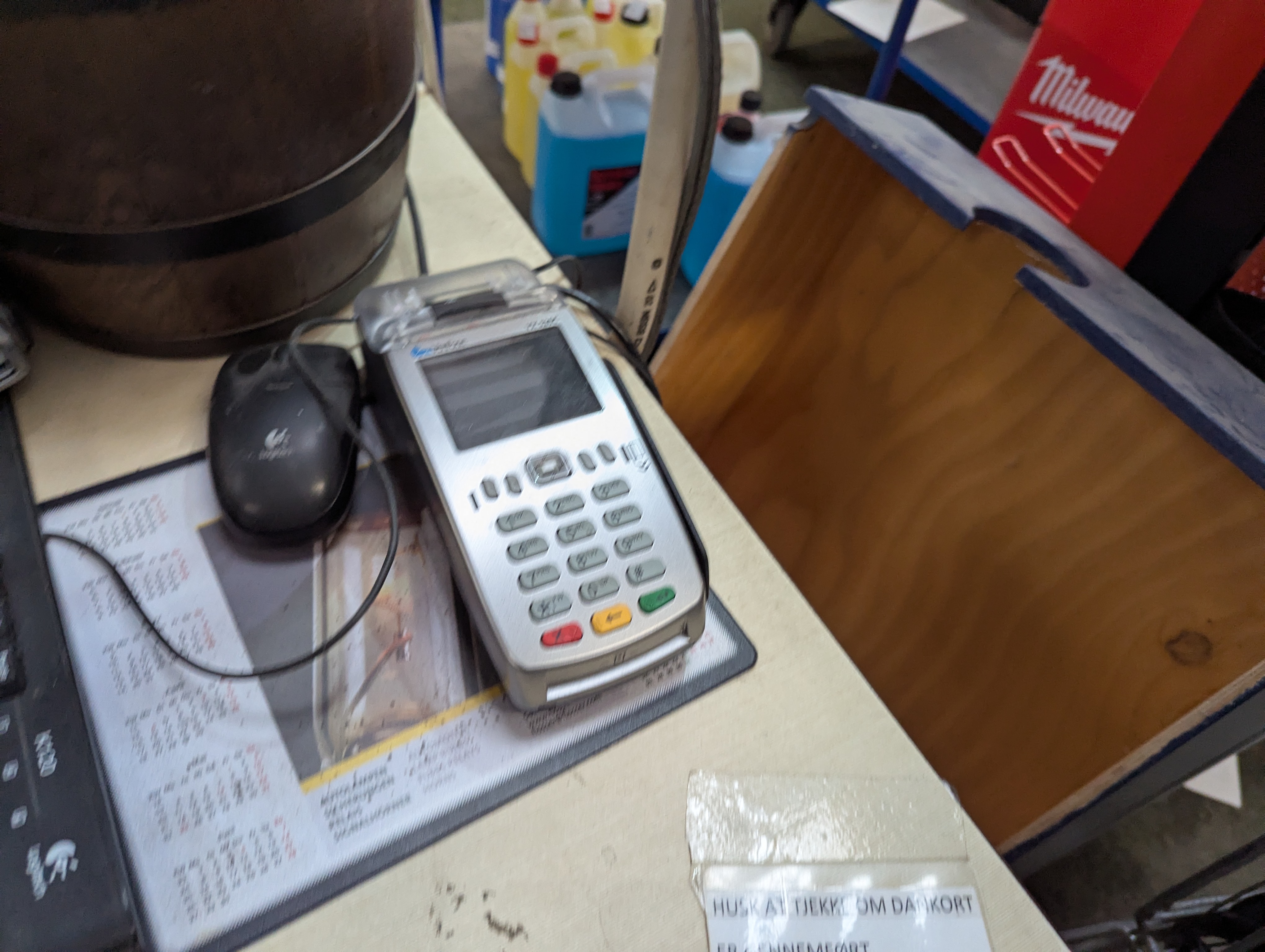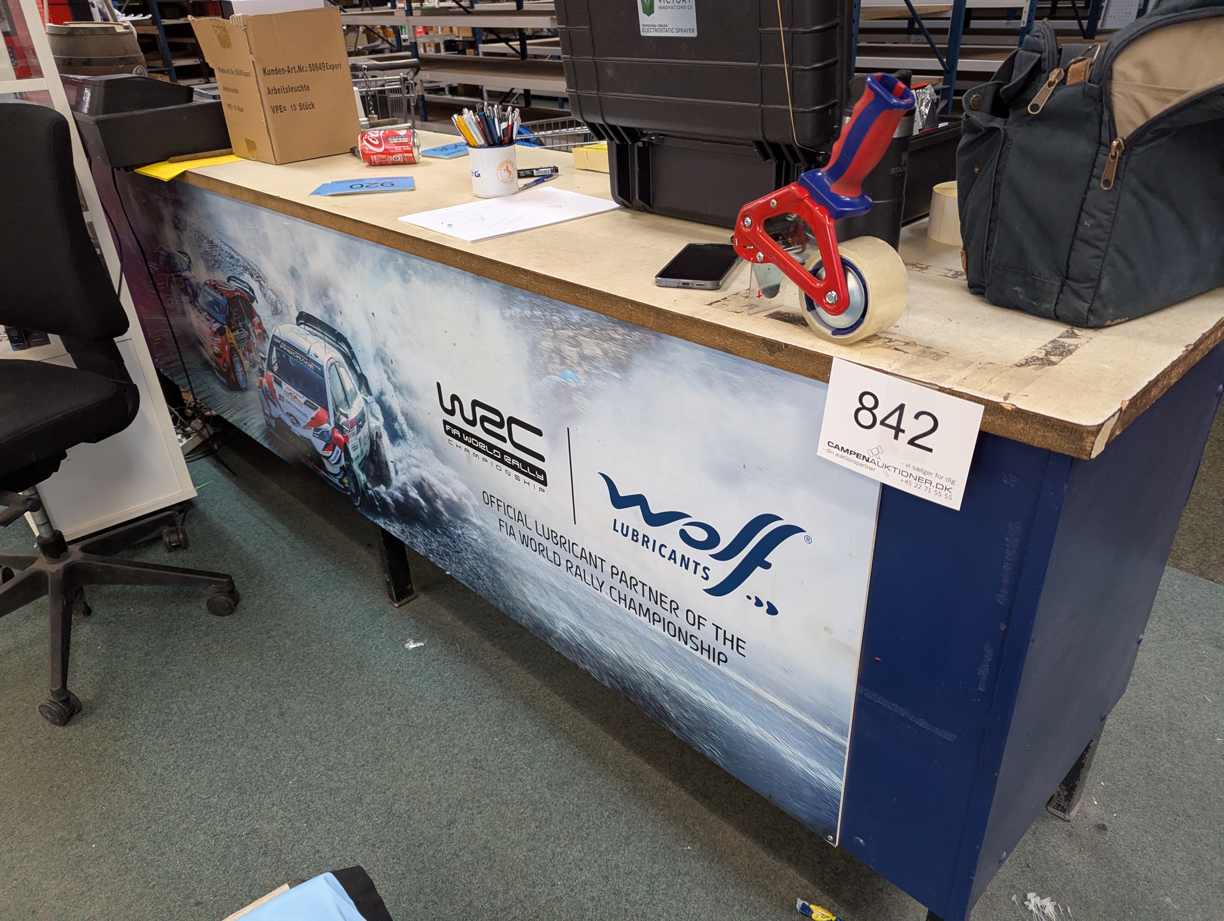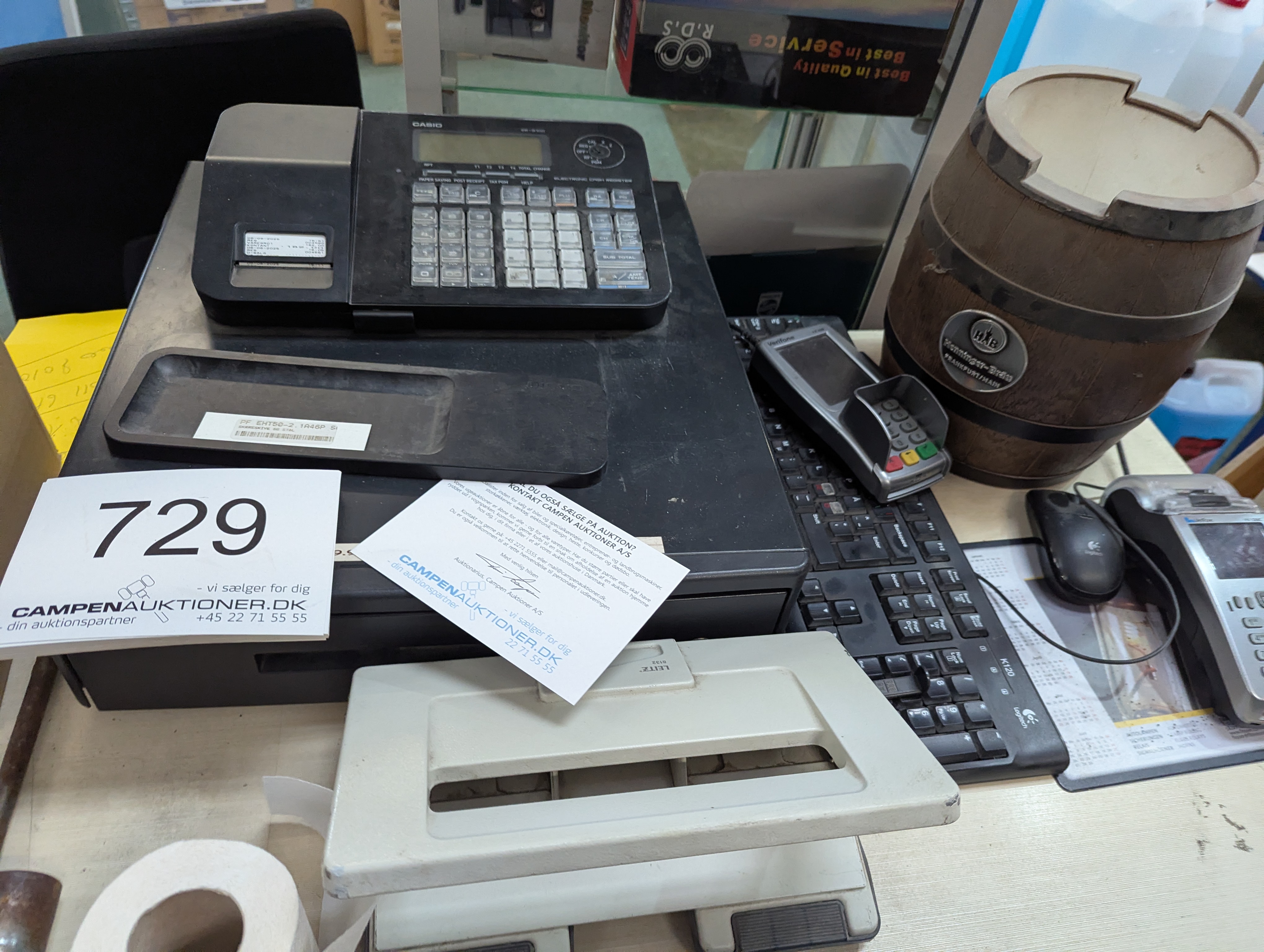 842. Salgsdisk inkl. Kasseapparat og tastatur m.m.