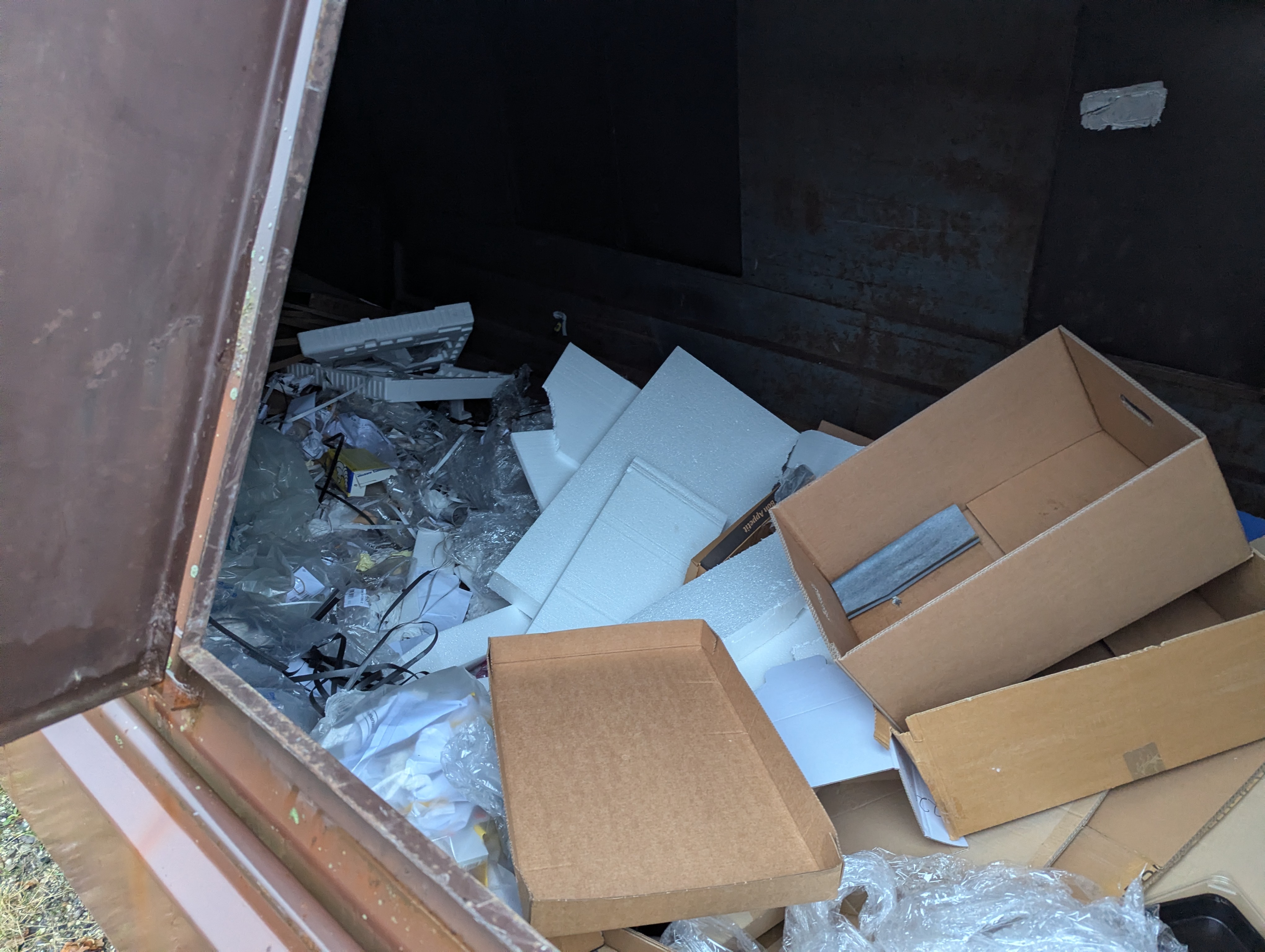 1058. Renoverson container sælges med div. Indhold af pap m.m.