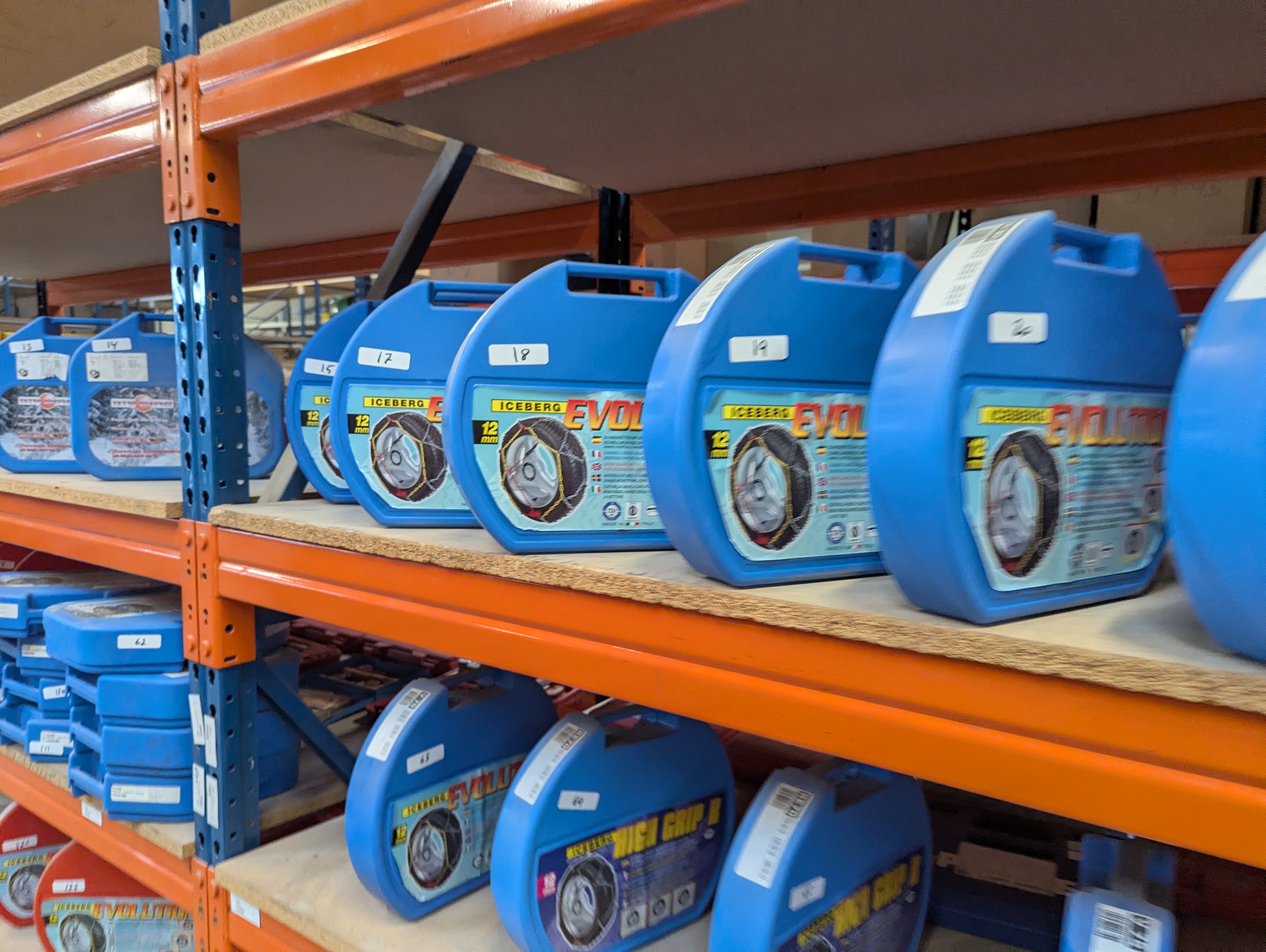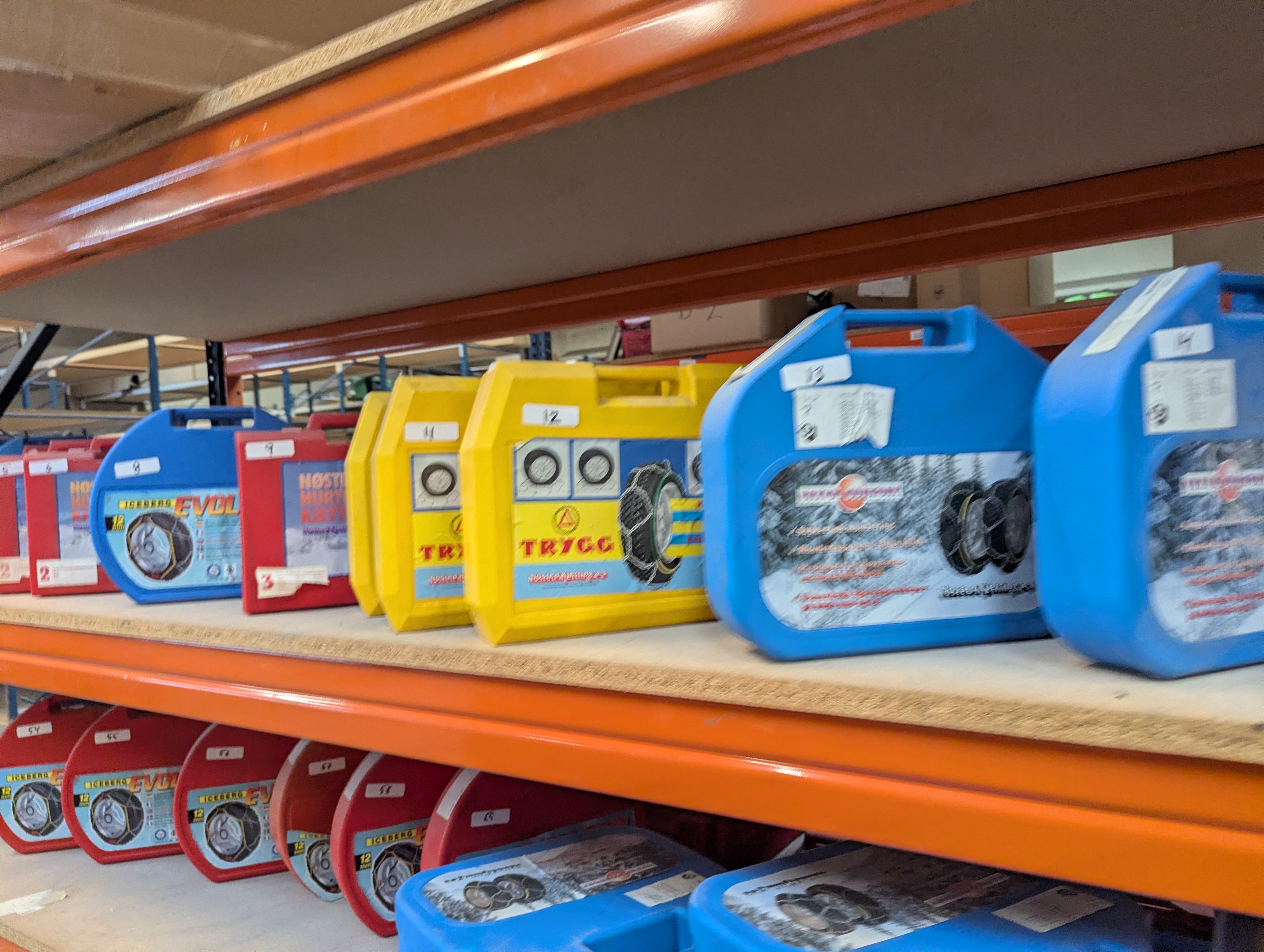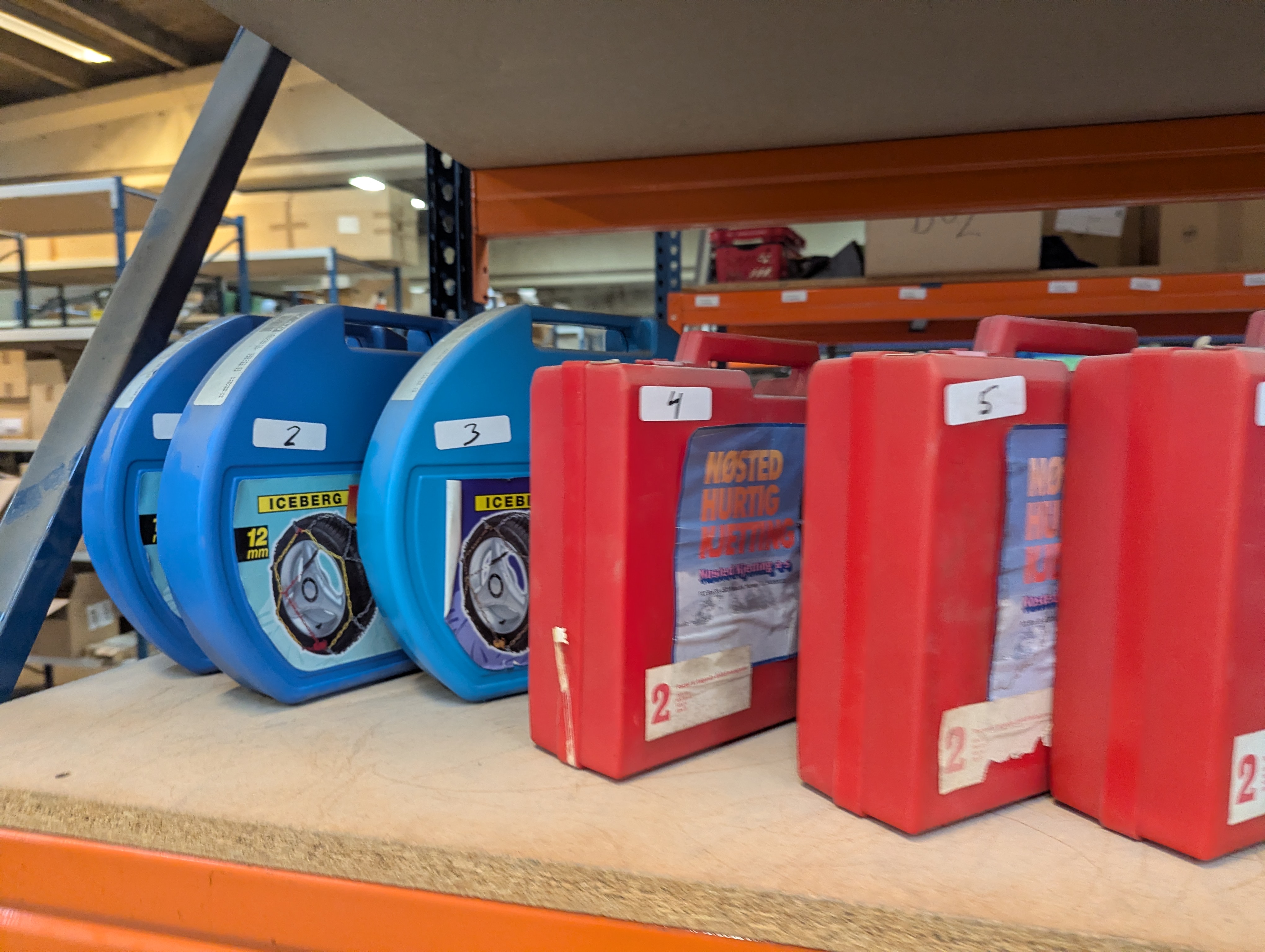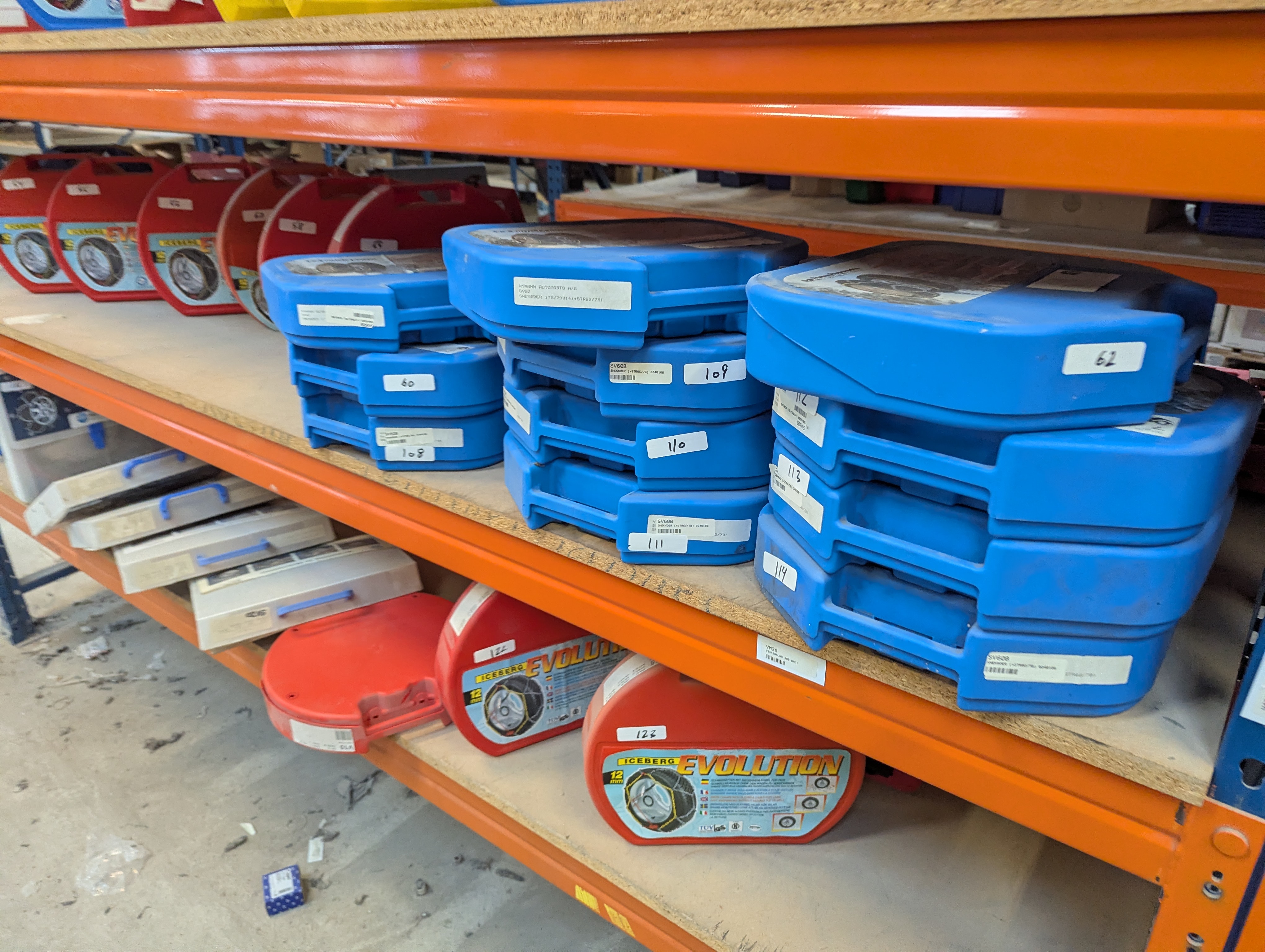 Ca. 120 sæt snekæder bl.a. mærket Iceberg m.fl. Auktionen byder både på traditionelle snekæder samt snesokker til mange forskellige dæk str.