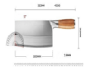 Klingelængde 20,5 cm, totallængde 32,3 cm, klingetykkelse 2,8 mm, vægt 435 g, Damaskus-stil, lyst træhåndtag