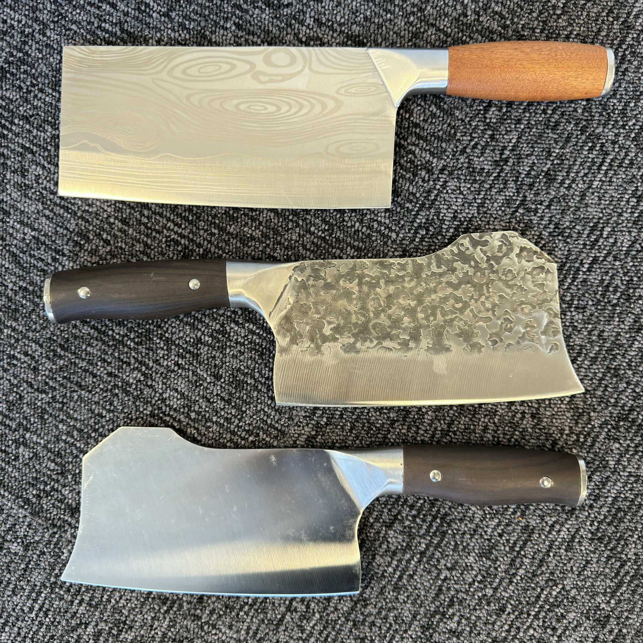 Knivsæt med tre modeller i 3Cr13 rustfrit stål, tilpasset til forskellige typer køkkenarbejde.