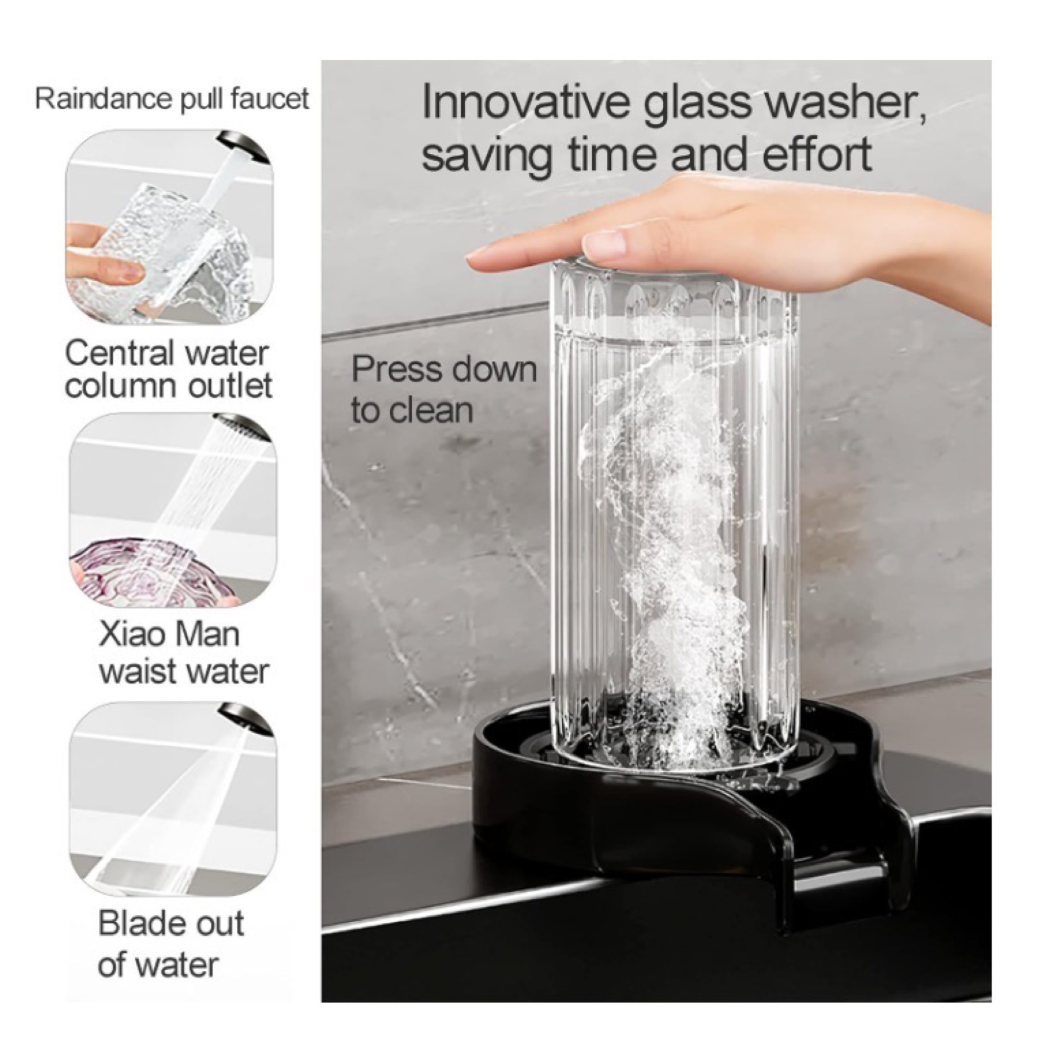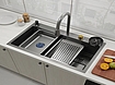 Vasken er udstyret med en udtrækstud, der giver stor fleksibilitet ved vask og rengøring af store gryder, mens den mindre hane er ideel til hurtige opgaver som at fylde glas eller skylle grøntsager.