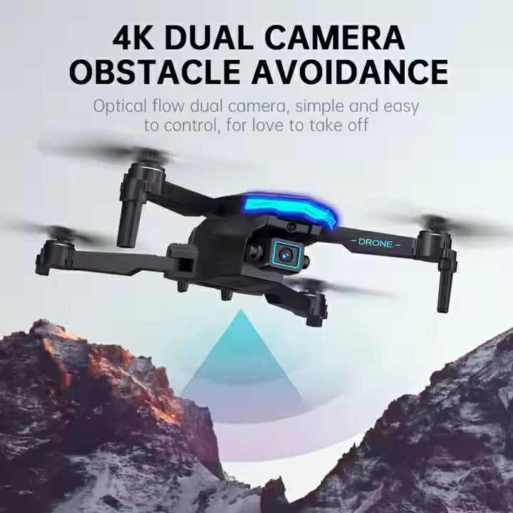 Kompakt 4K-drone med dobbeltkameraer og foldbart design. Udstyret med WiFi-transmission (dronen opretter sit eget WiFi-netværk, så du får livevideo direkte til din mobiltelefon uden at dronen behøver internet).