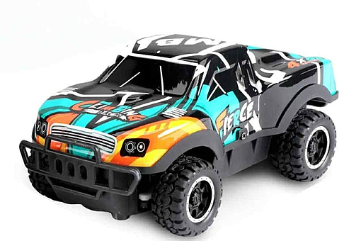 Kompakt radiostyret bil i pickup-stil. Nem at køre for både børn og voksne, fungerer på plane overflader og lettere terræn.