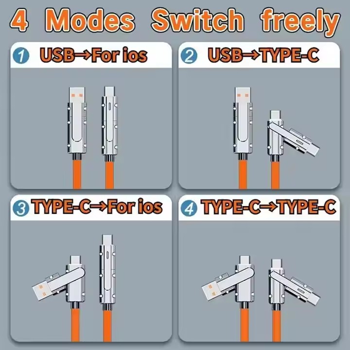 Stikkene er drejelige, hvilket betyder, at du nemt kan skifte mellem forskellige tilstande – for eksempel fra USB A til Type-C eller fra Type-C til Lightning – med et hurtigt drej på stikket.