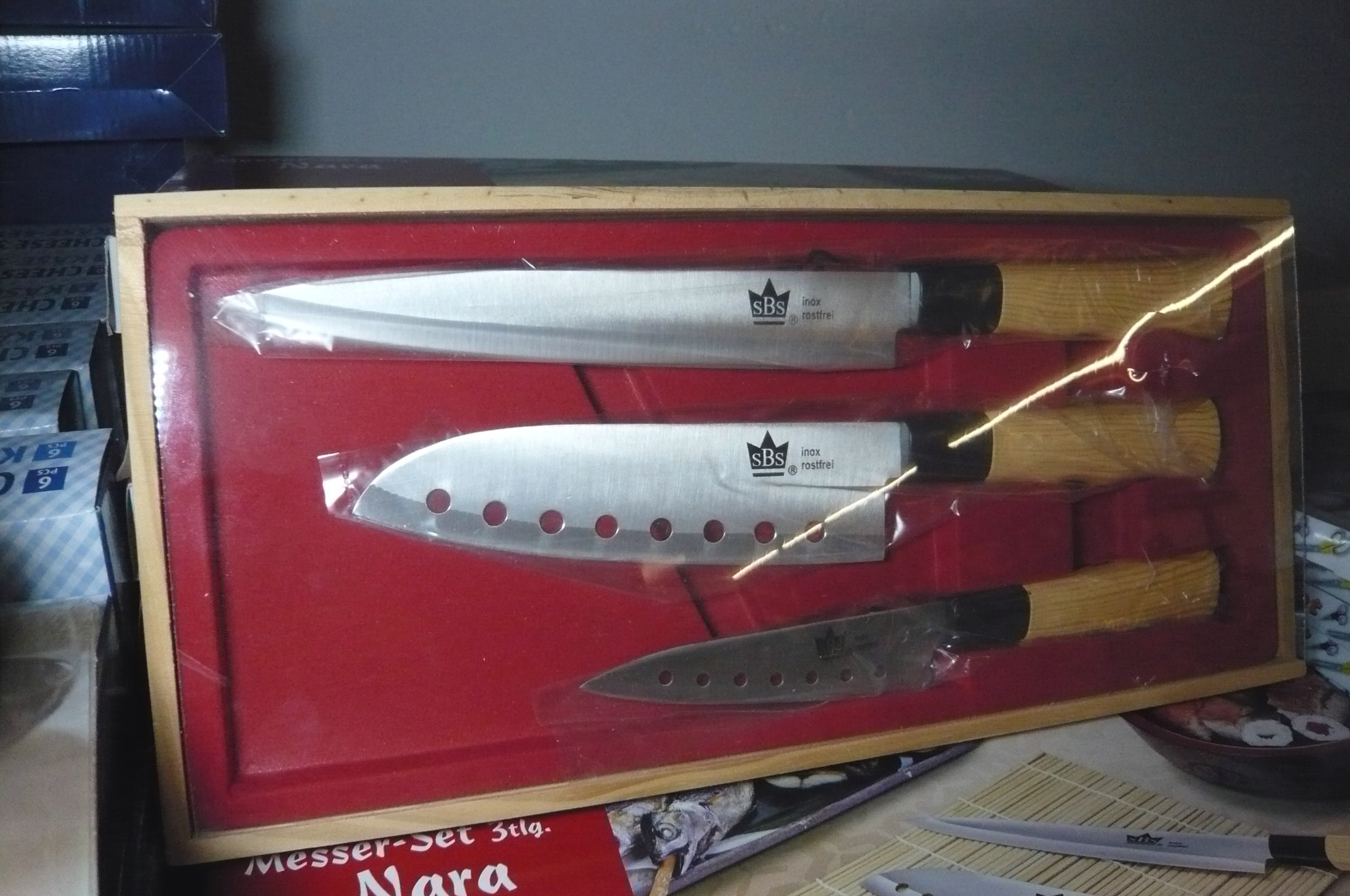 903. 3 dele knivsæt i gaveæske, SBS