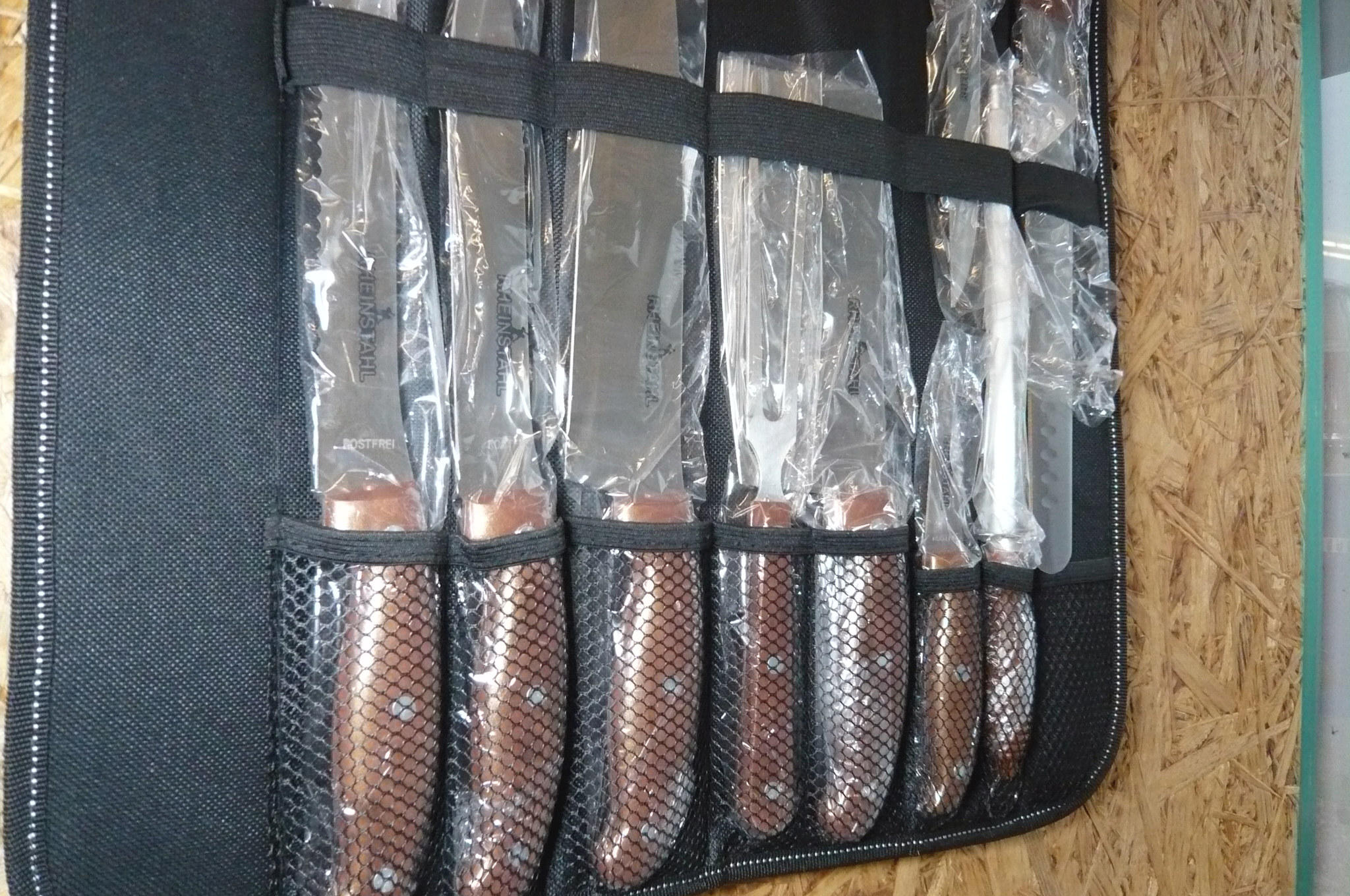 904. 9 dele knivsæt i bæretaske, Rheinstahl