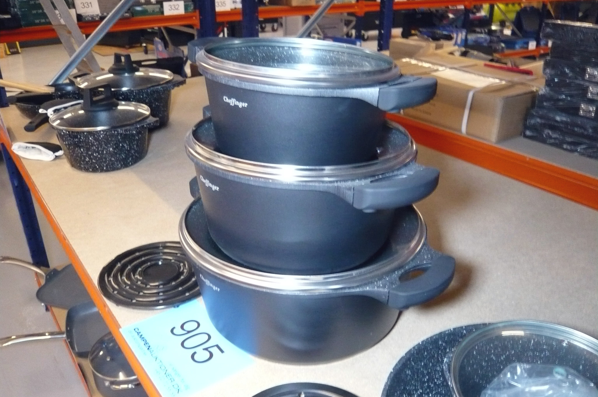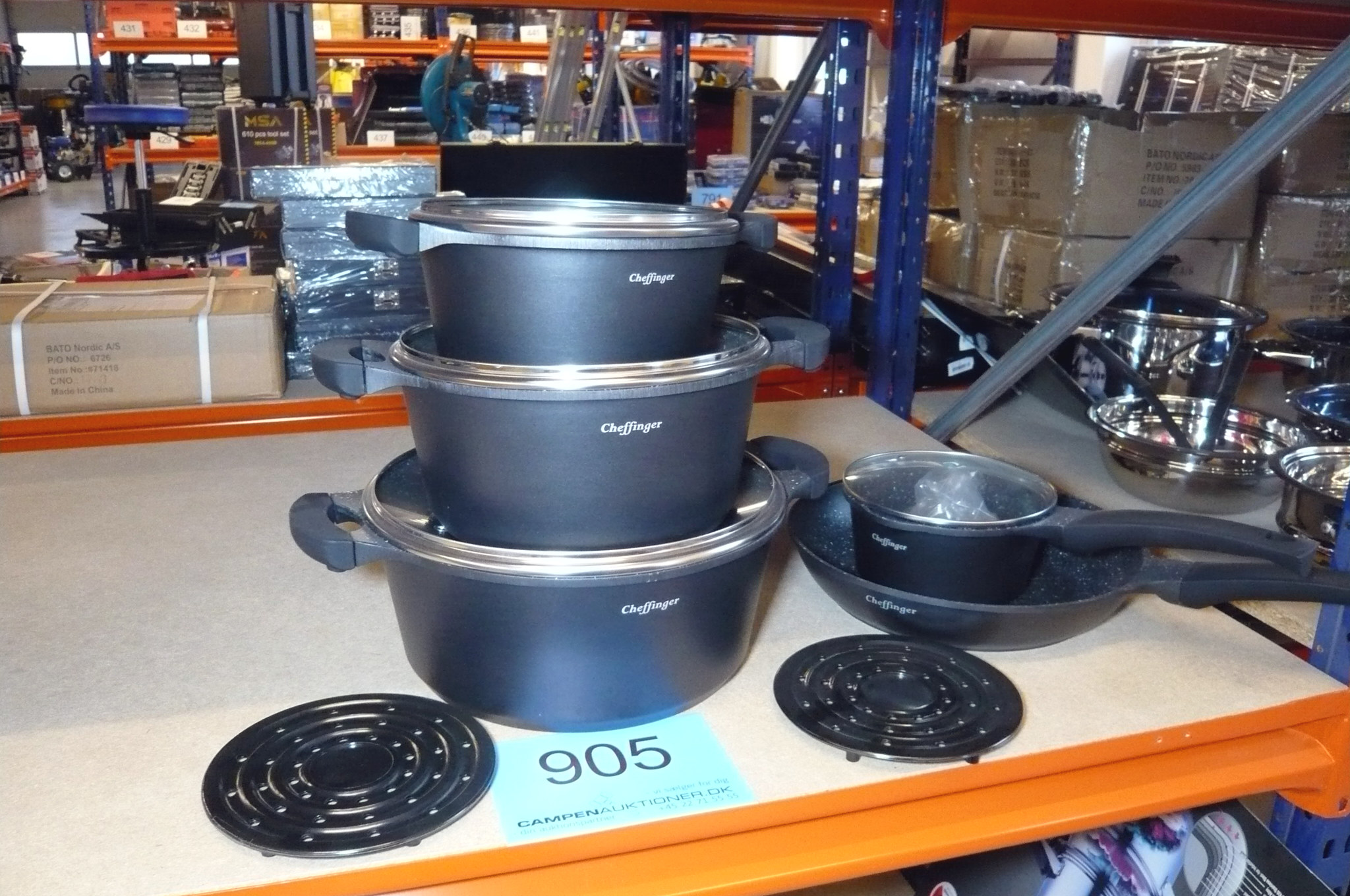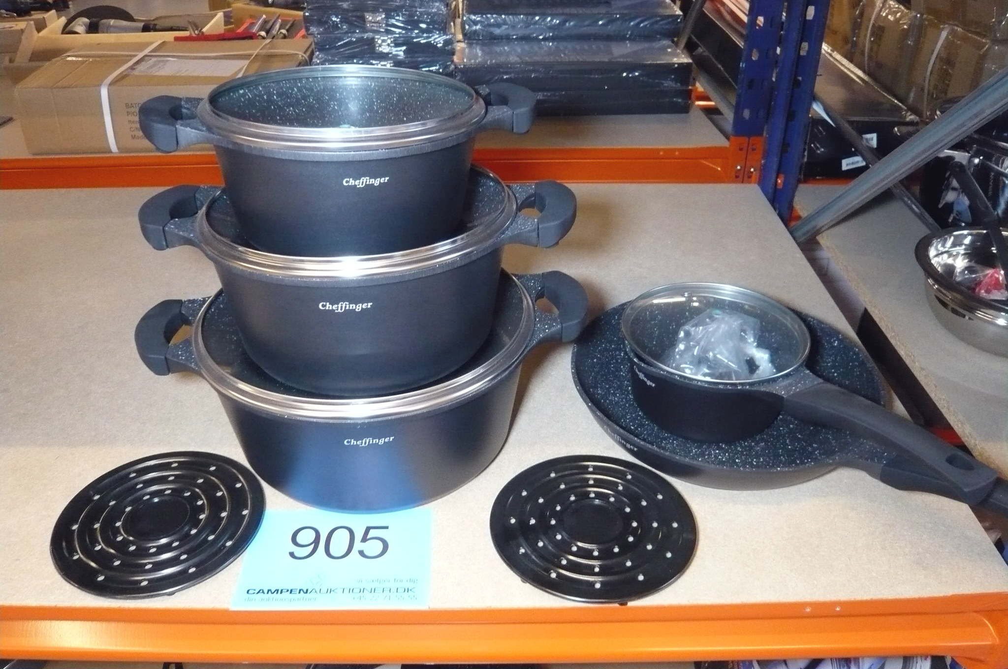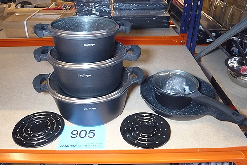 905. 11 dele gryde-/pandesæt m/glaslåg
