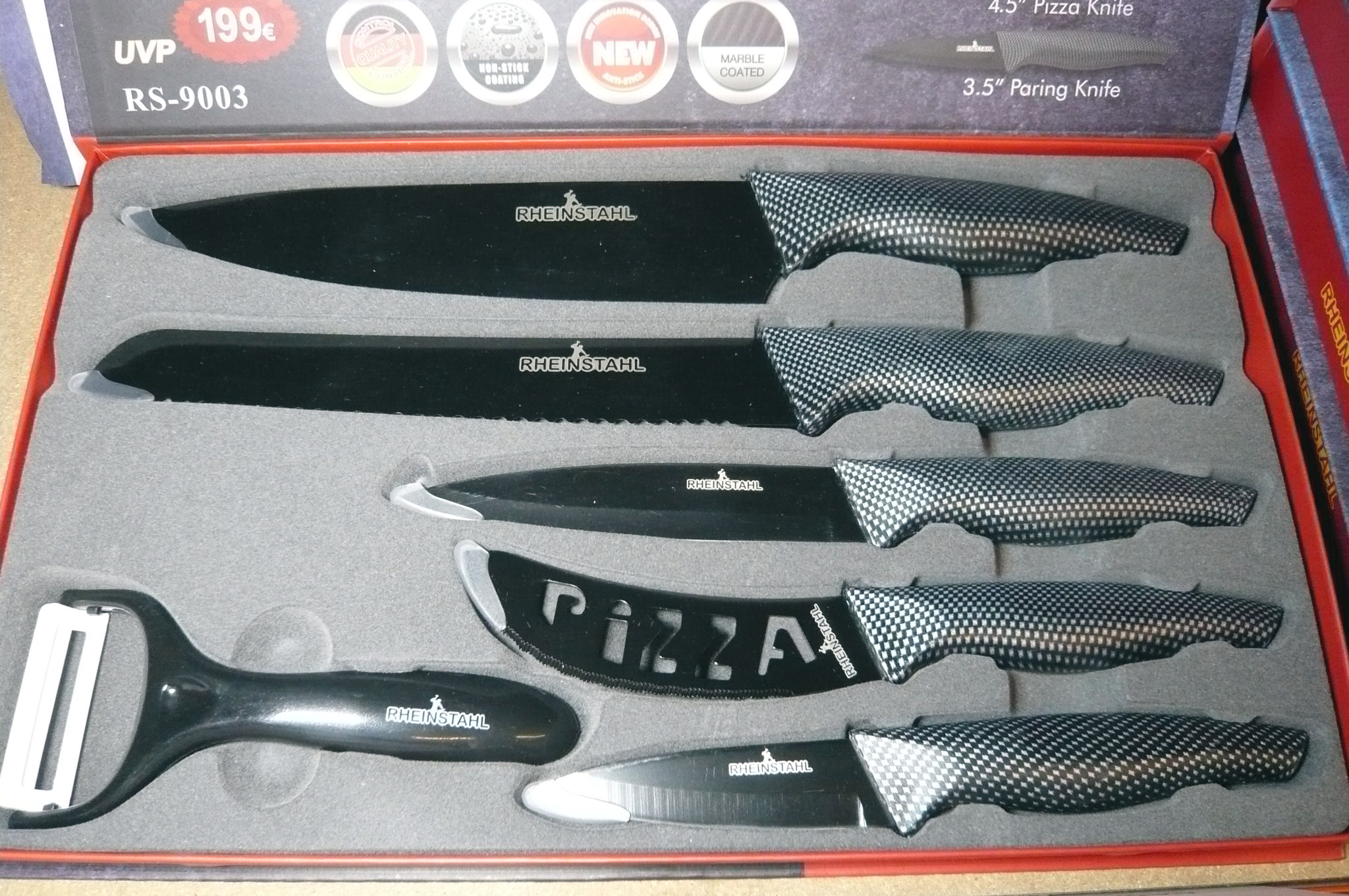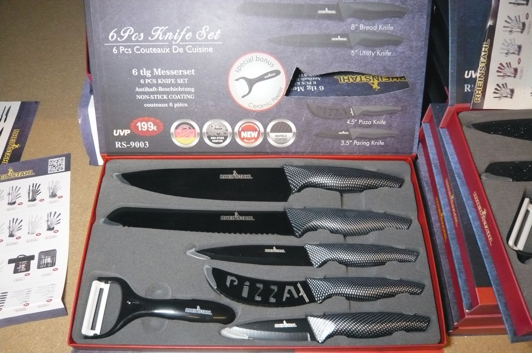 919. 6 dele knivsæt i gaveæske, Rheinstahl