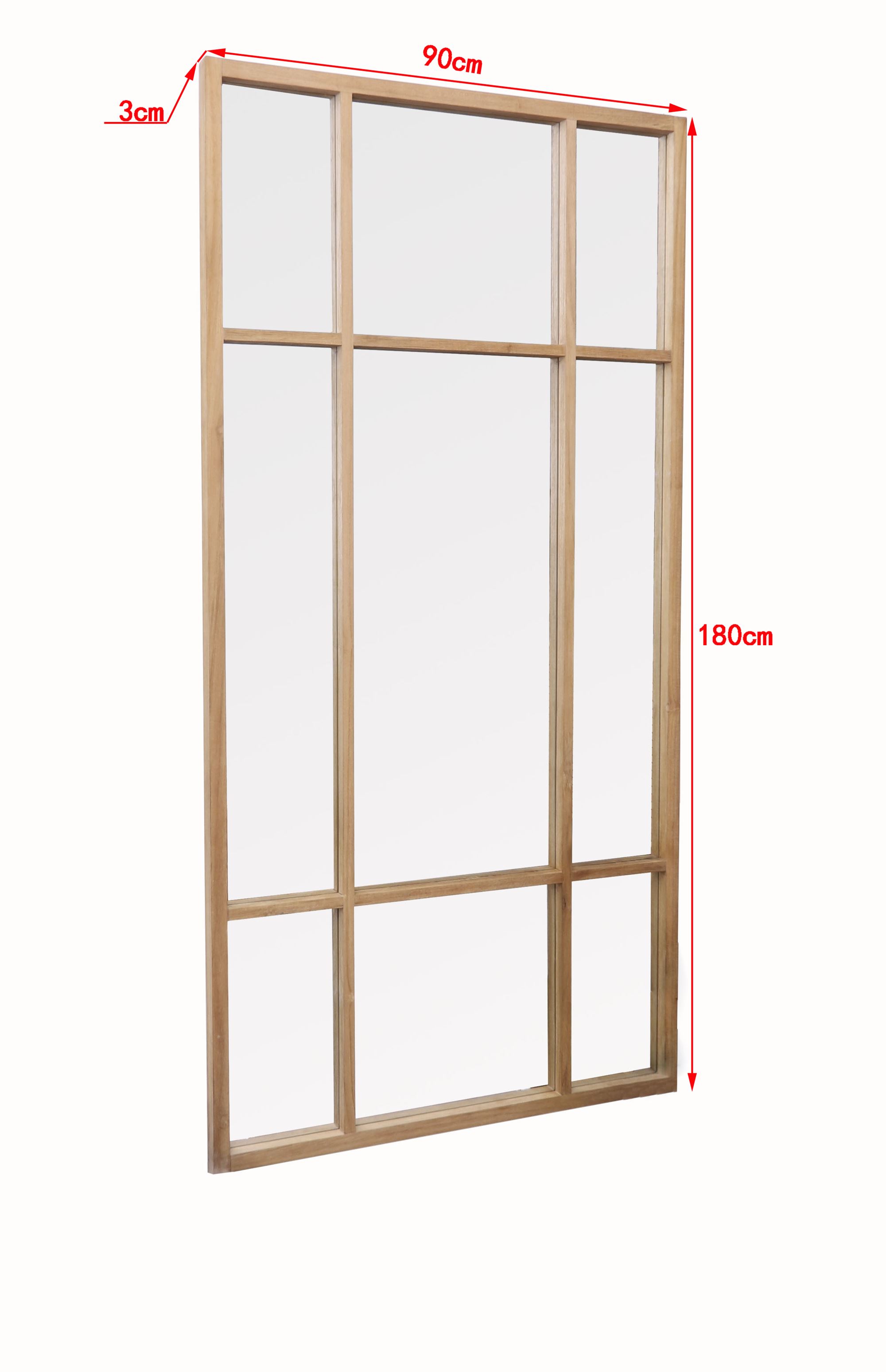 Spejl m. ramme i teak, rustik 180x90cm, A30B.Daneline spejl. Stort spejl med naturfarvet ramme i teaktræ med rustic finish. Stort spejl til ophæng på væg i naturfarvet ramme i teaktræ med rustik finish. Spejlet kan både stå på gulvet og hænges op vandret eller lodret. Se foto for alle mål. B 90 x H 180 x D 3 cm Vægt 28kg Flegt - Certificeret teak træ