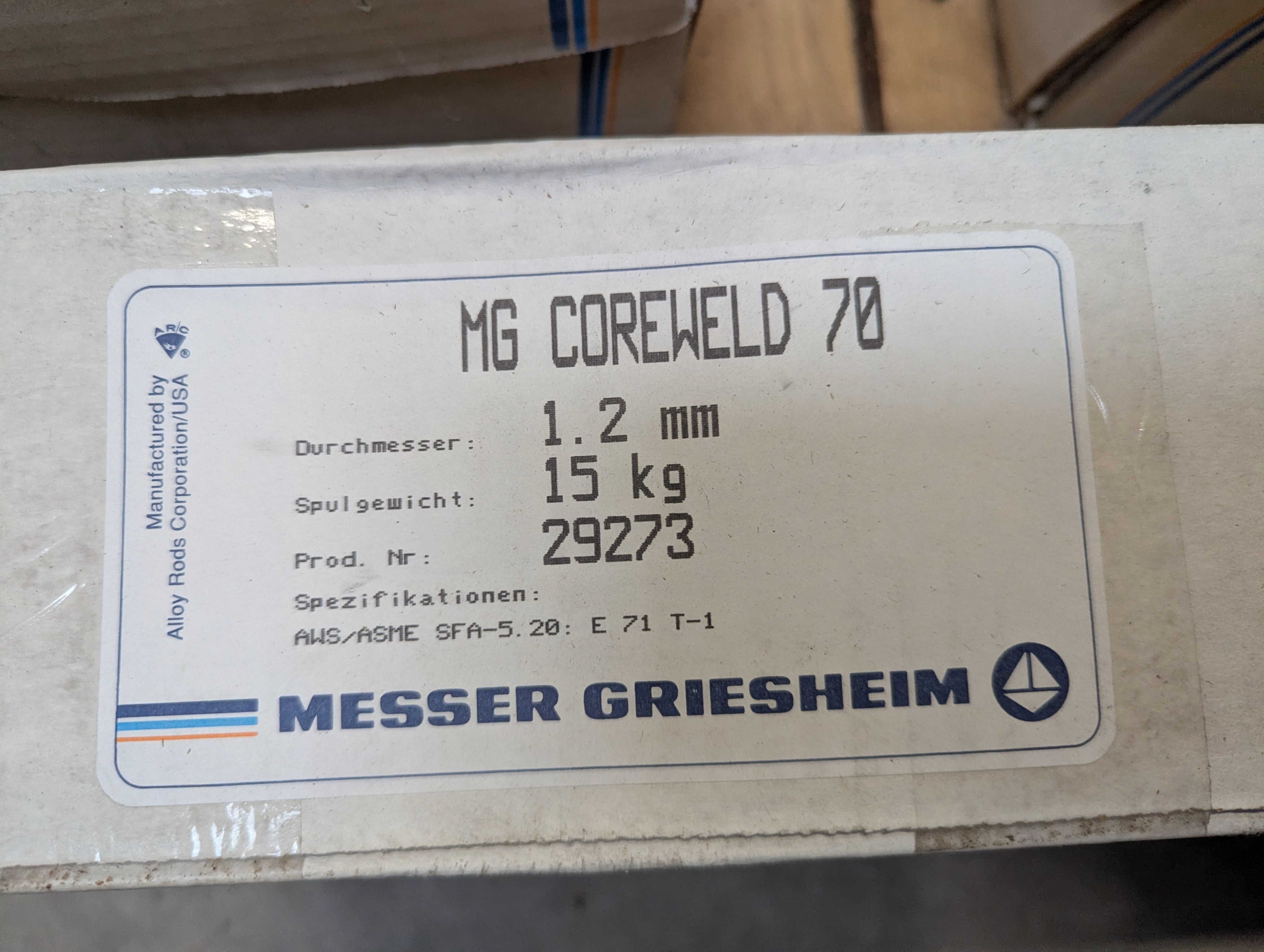 863. 2 stk. Mg Coreweld 70 1,2 mm. 15 kg