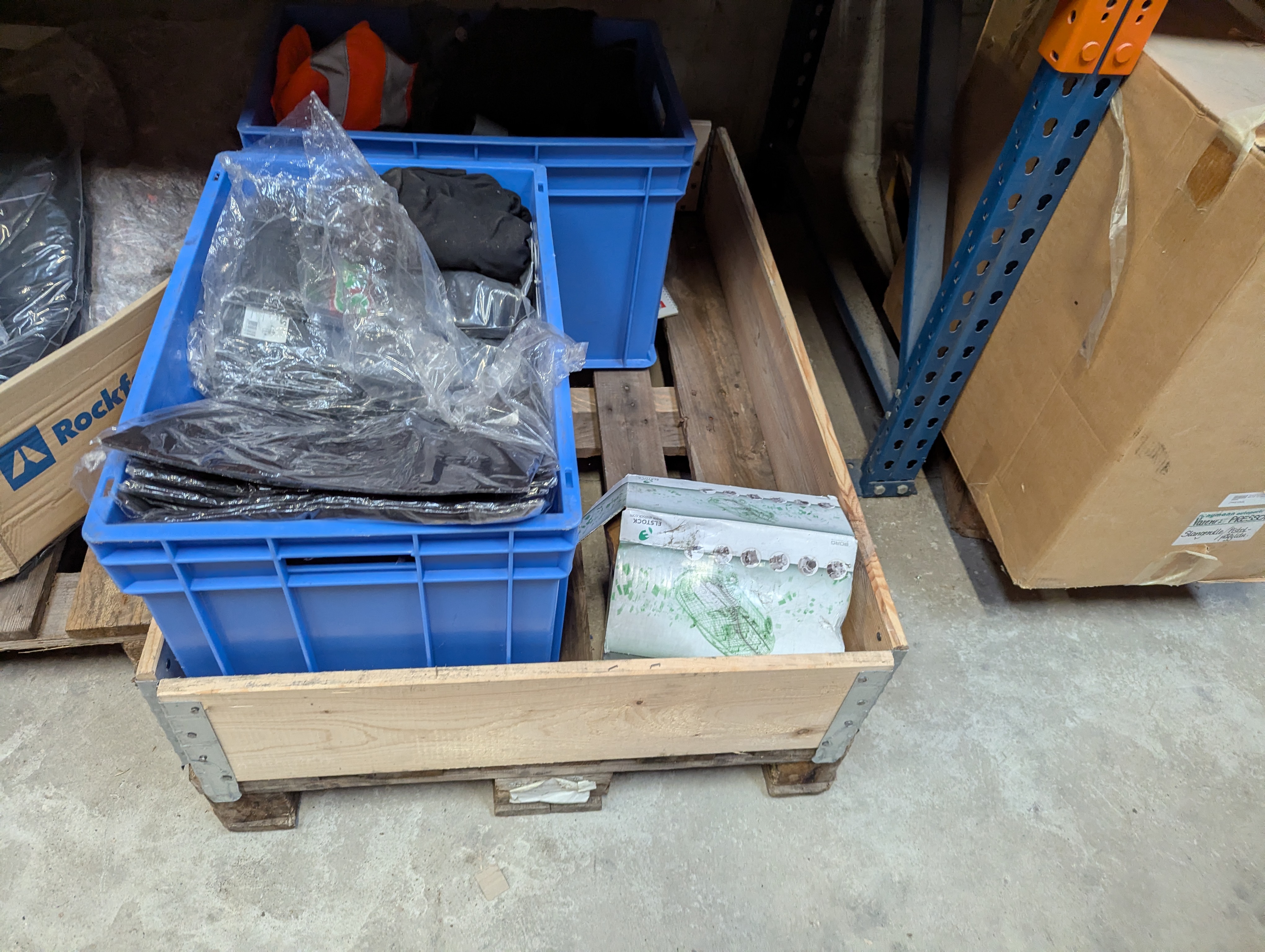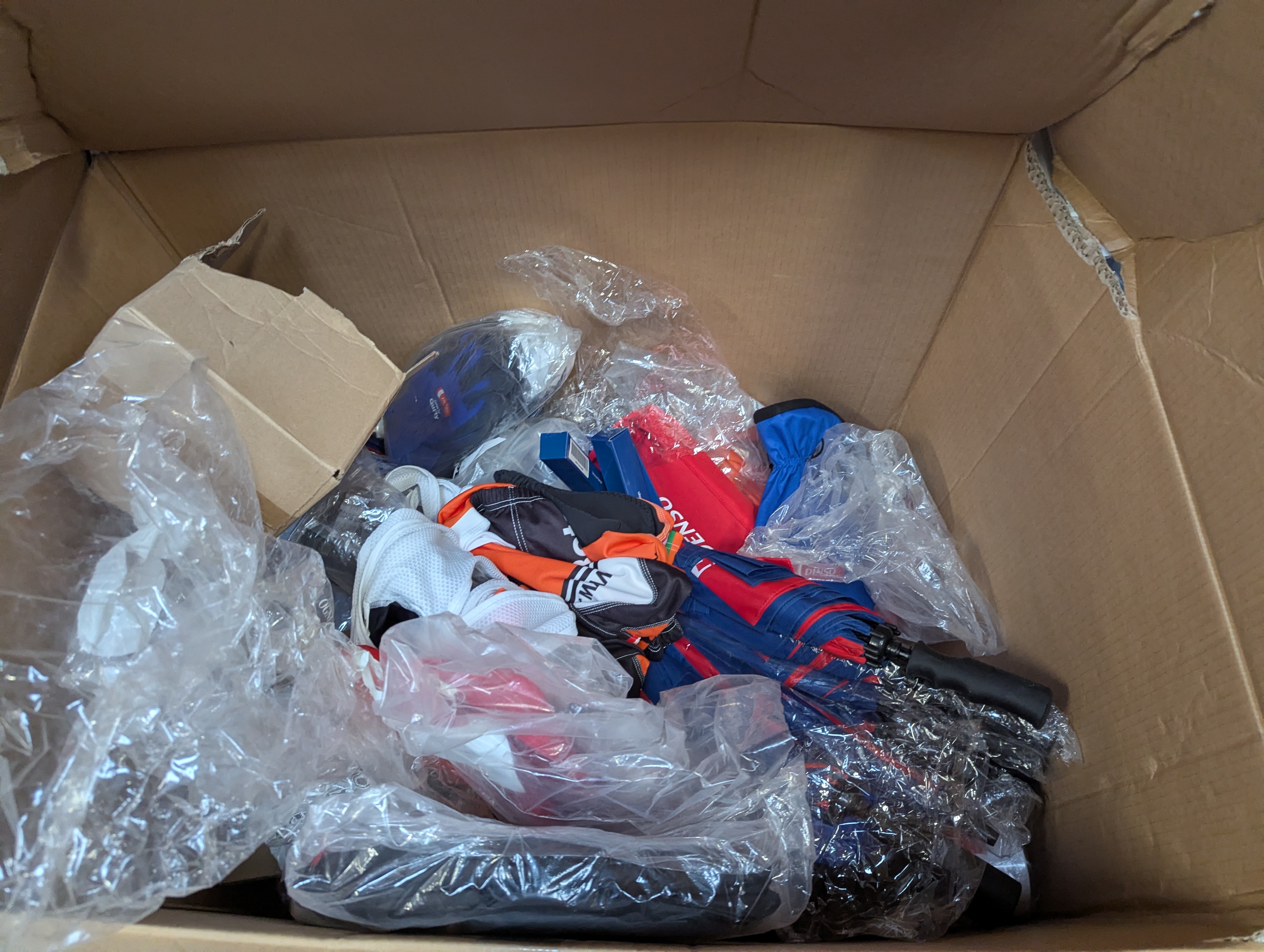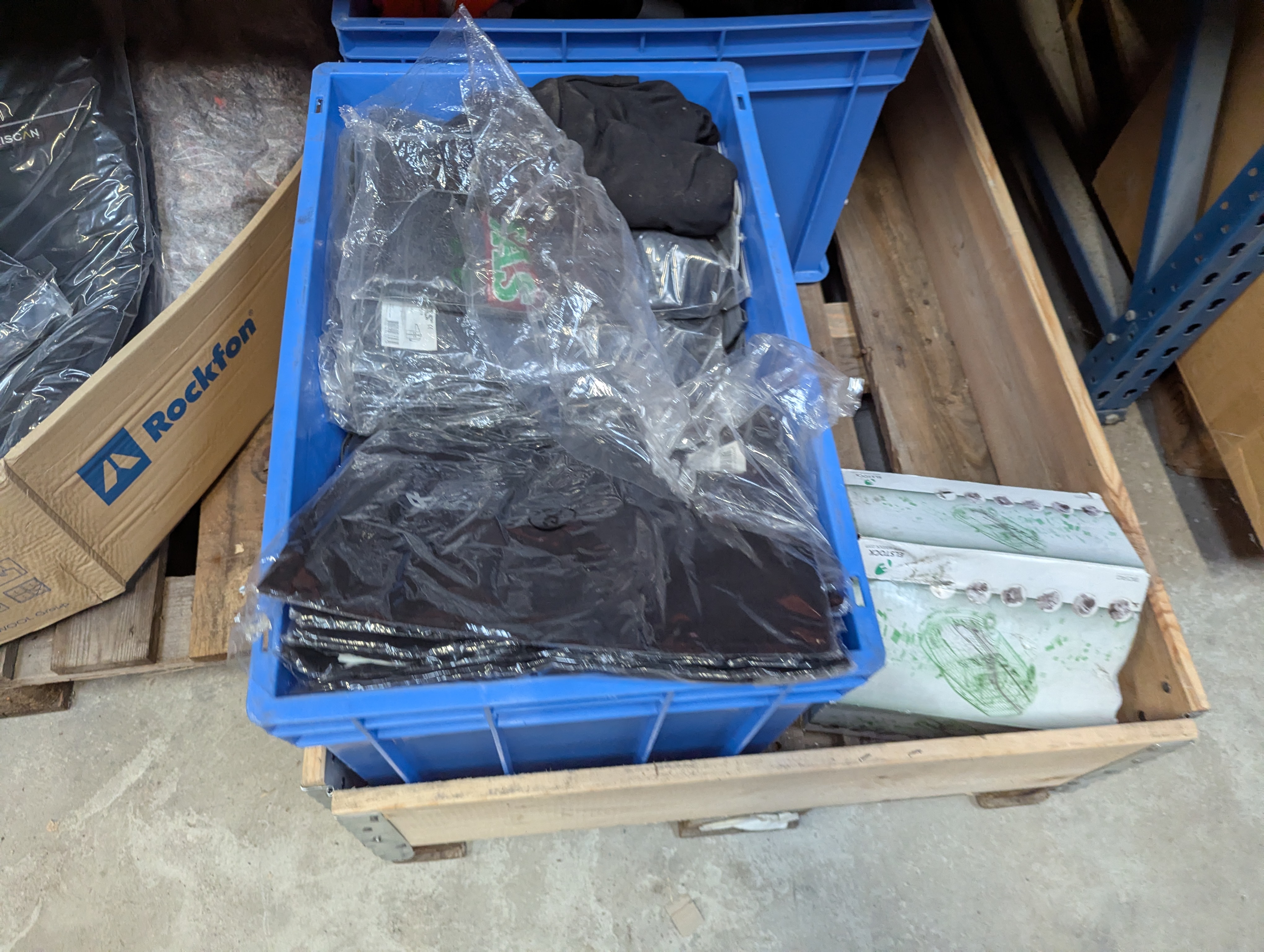 895. Div. arbejdstøj samt kasse med merchandise