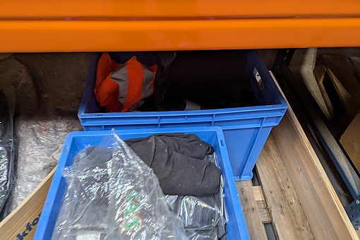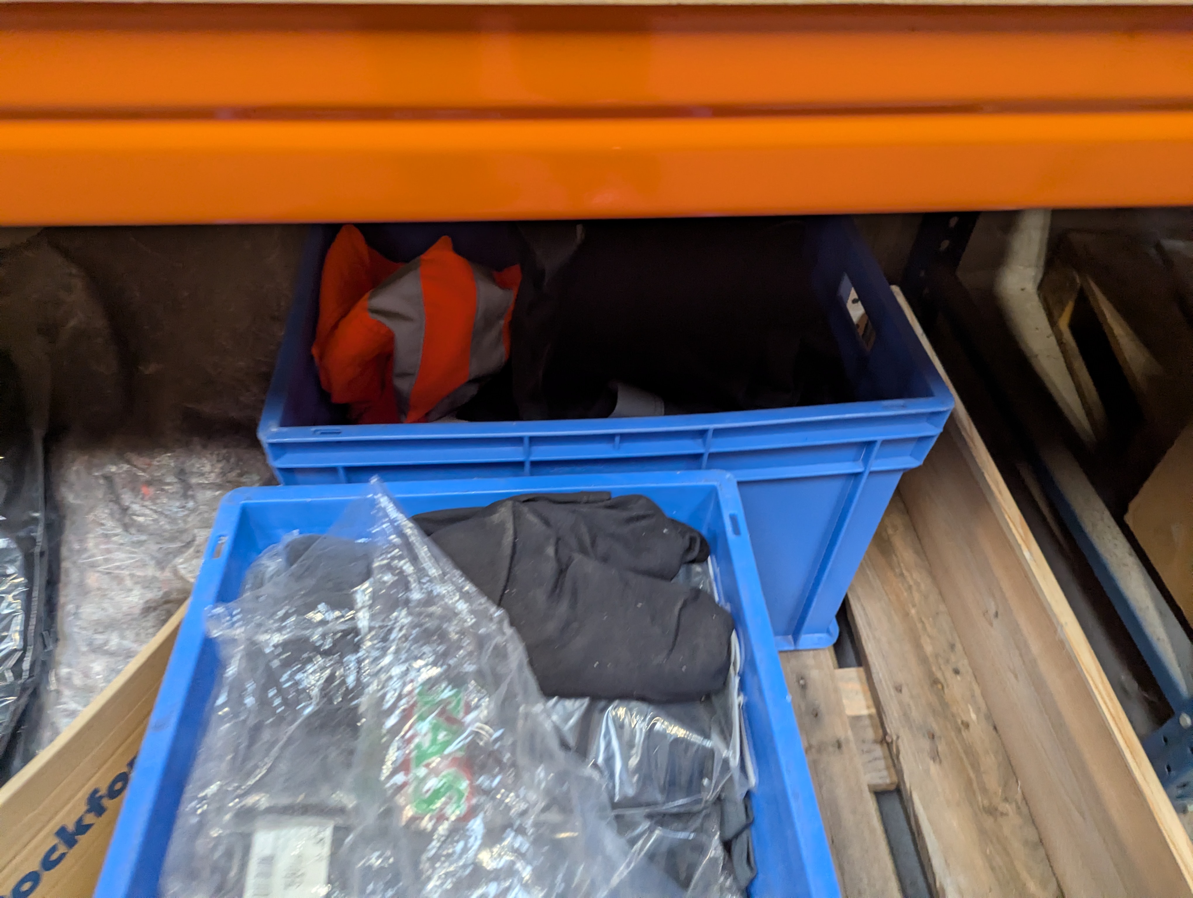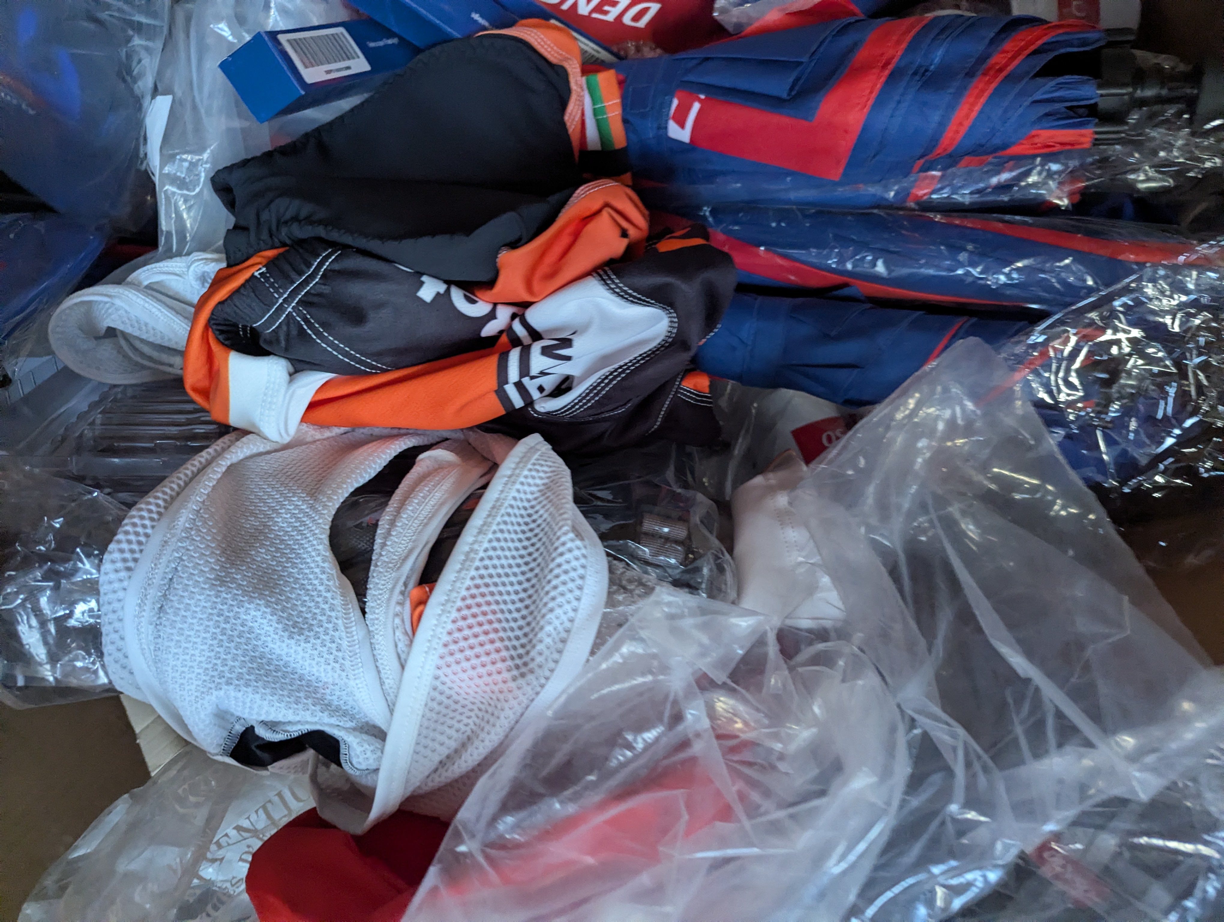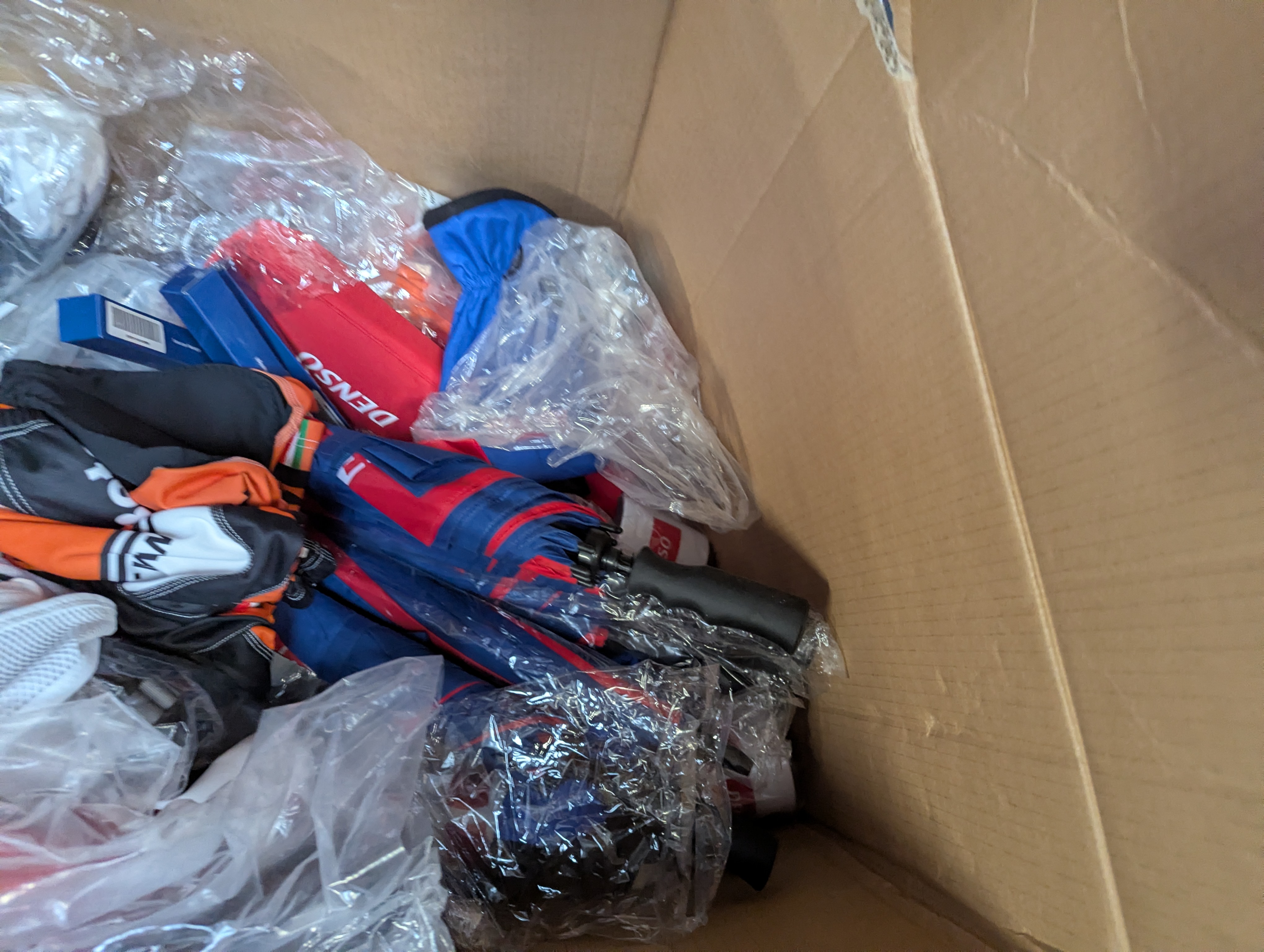 895. Div. arbejdstøj samt kasse med merchandise