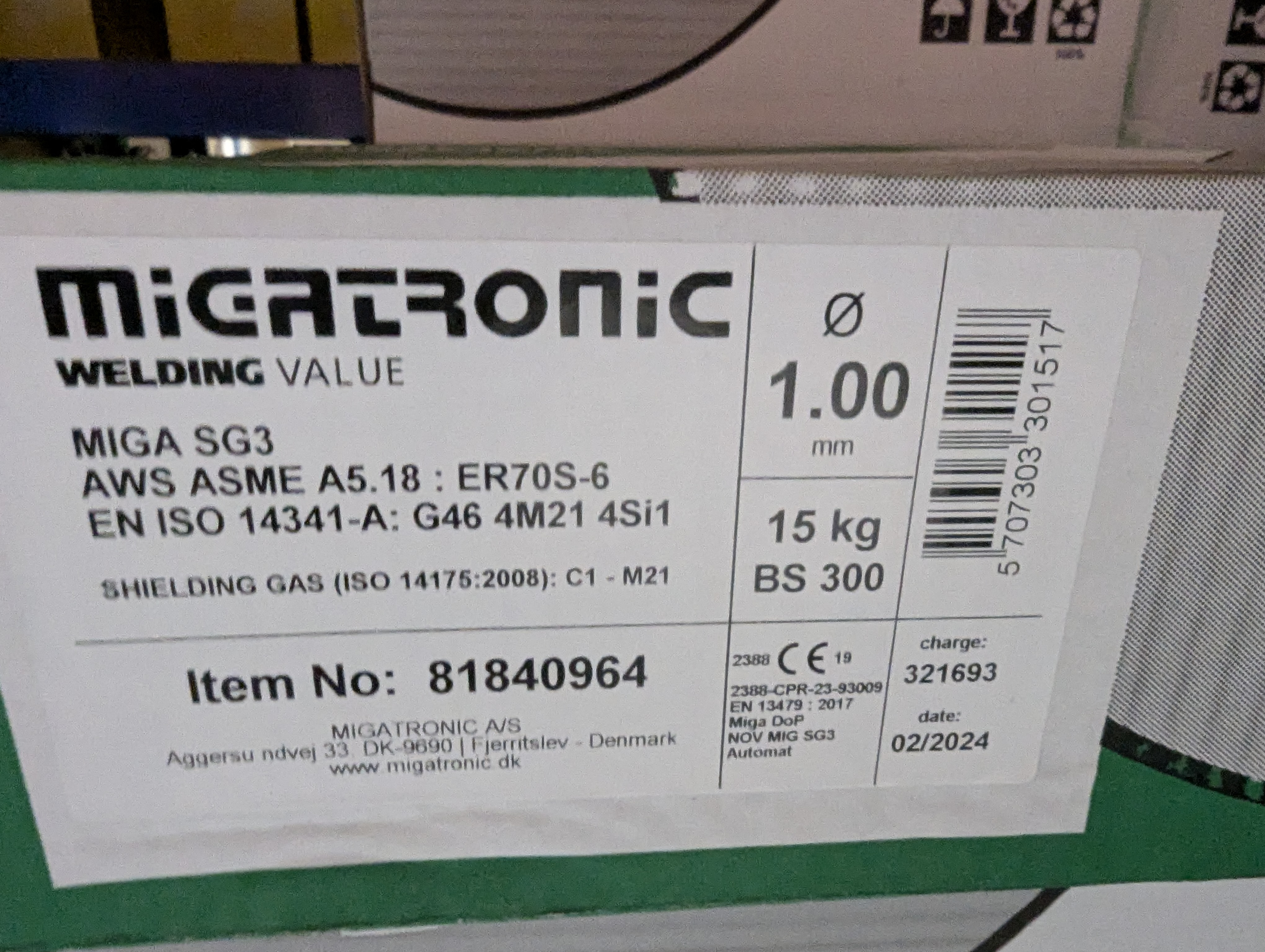 897. 2 ks BS300 15 kg. Migatronic svejsetråd