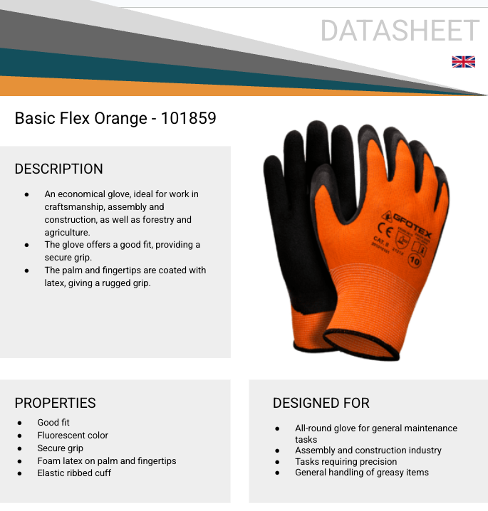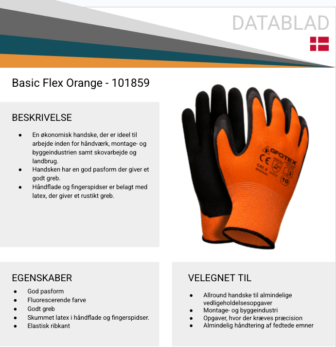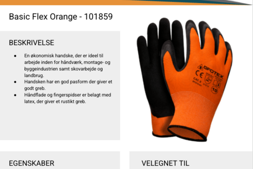 166. 240 par. Basic Flex Orange allround handske str.7