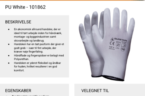 174. 240 par. PU WHITE all-round handske str. 11