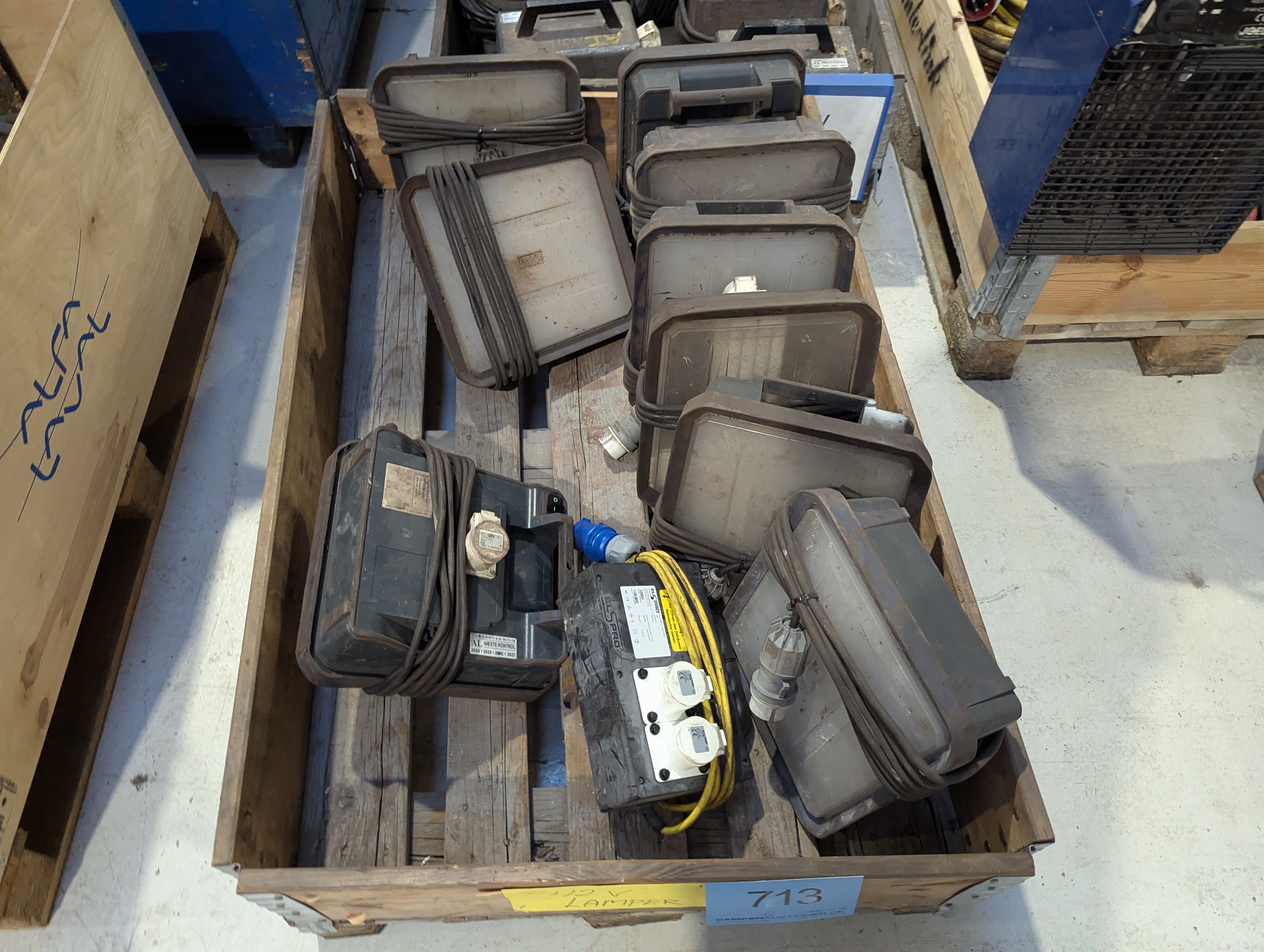 713. 9 stk. 45V arbejdslamper m.m.