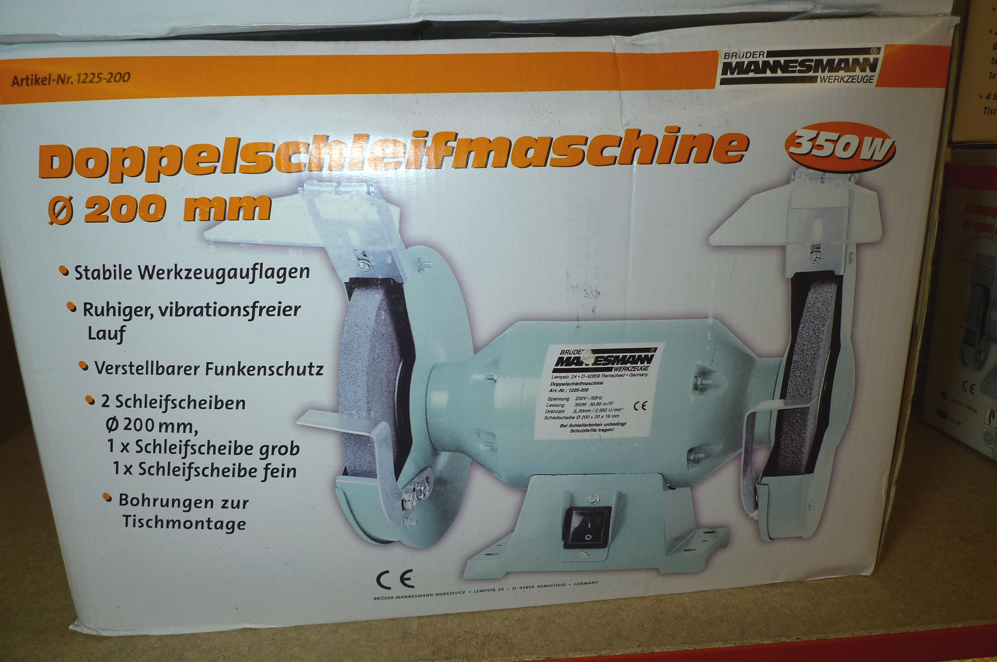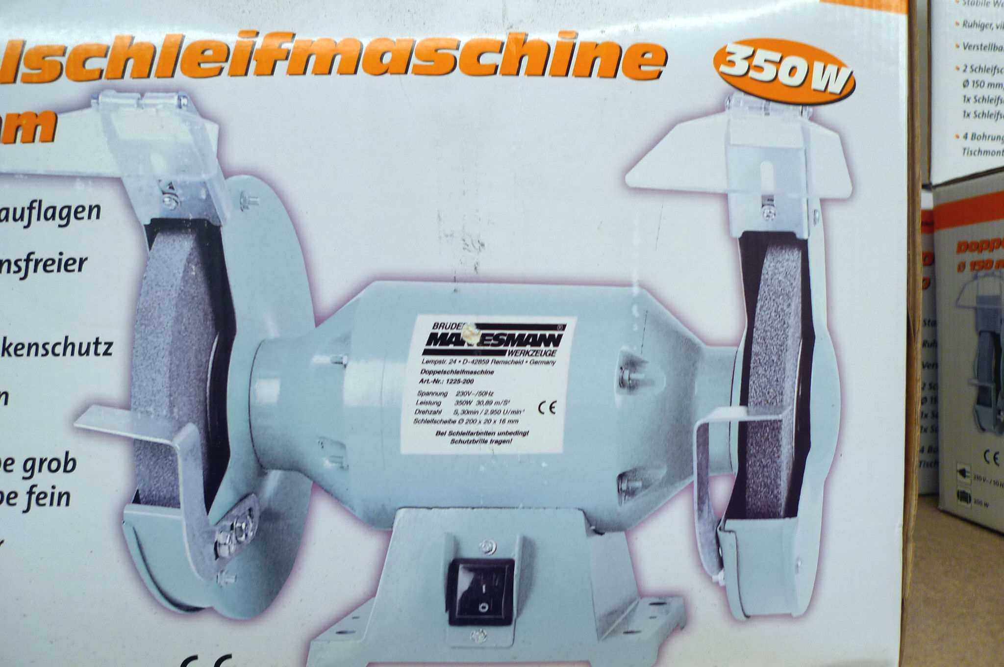 309. 200mm dobb. bænksliber m/2 stk. slibesten 350W 230V, Mannesmann
