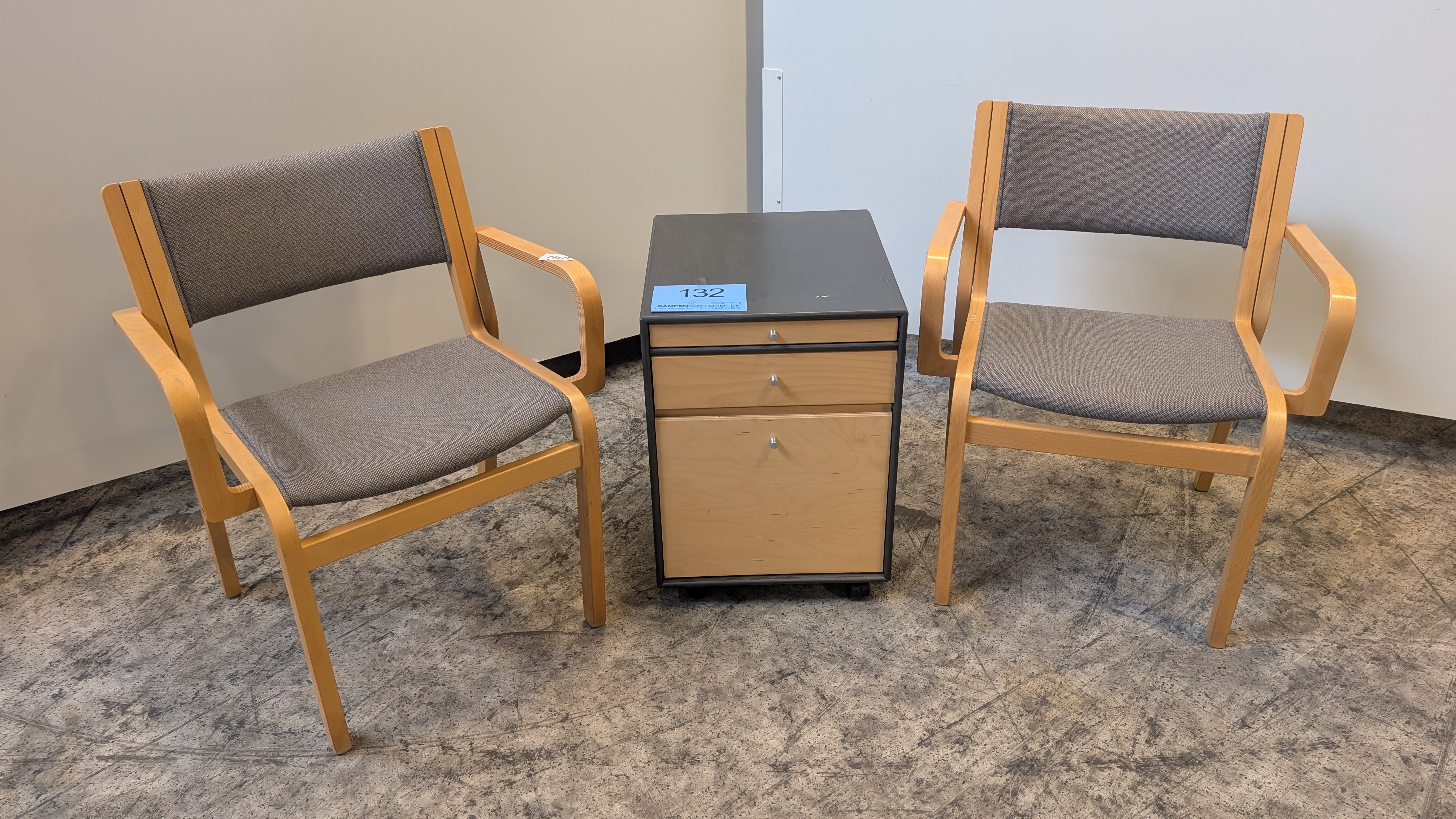 132. 2 stk. stole og en skuffesektion