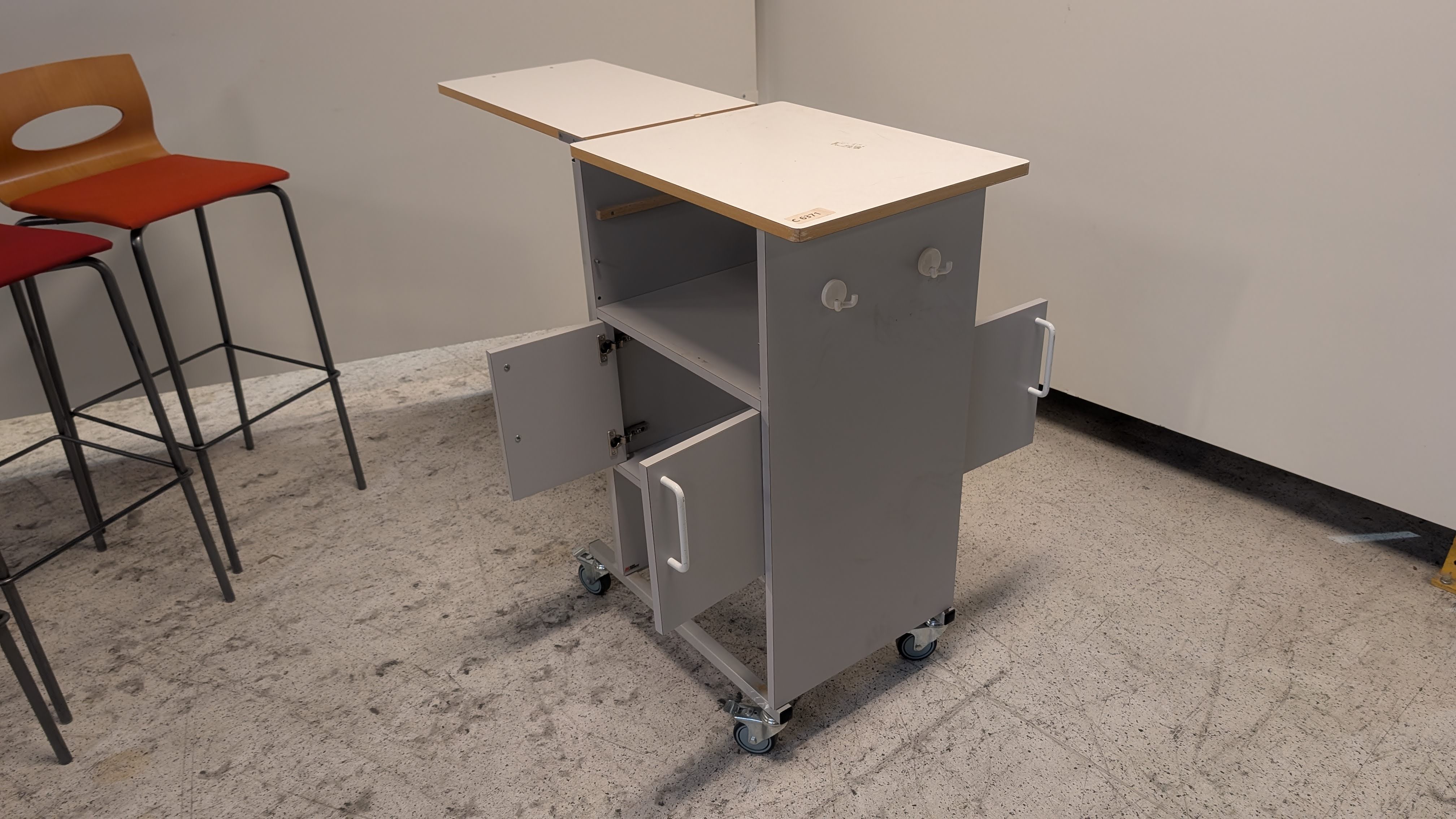1 stk. sengebord på hjul med udklap, se billeder