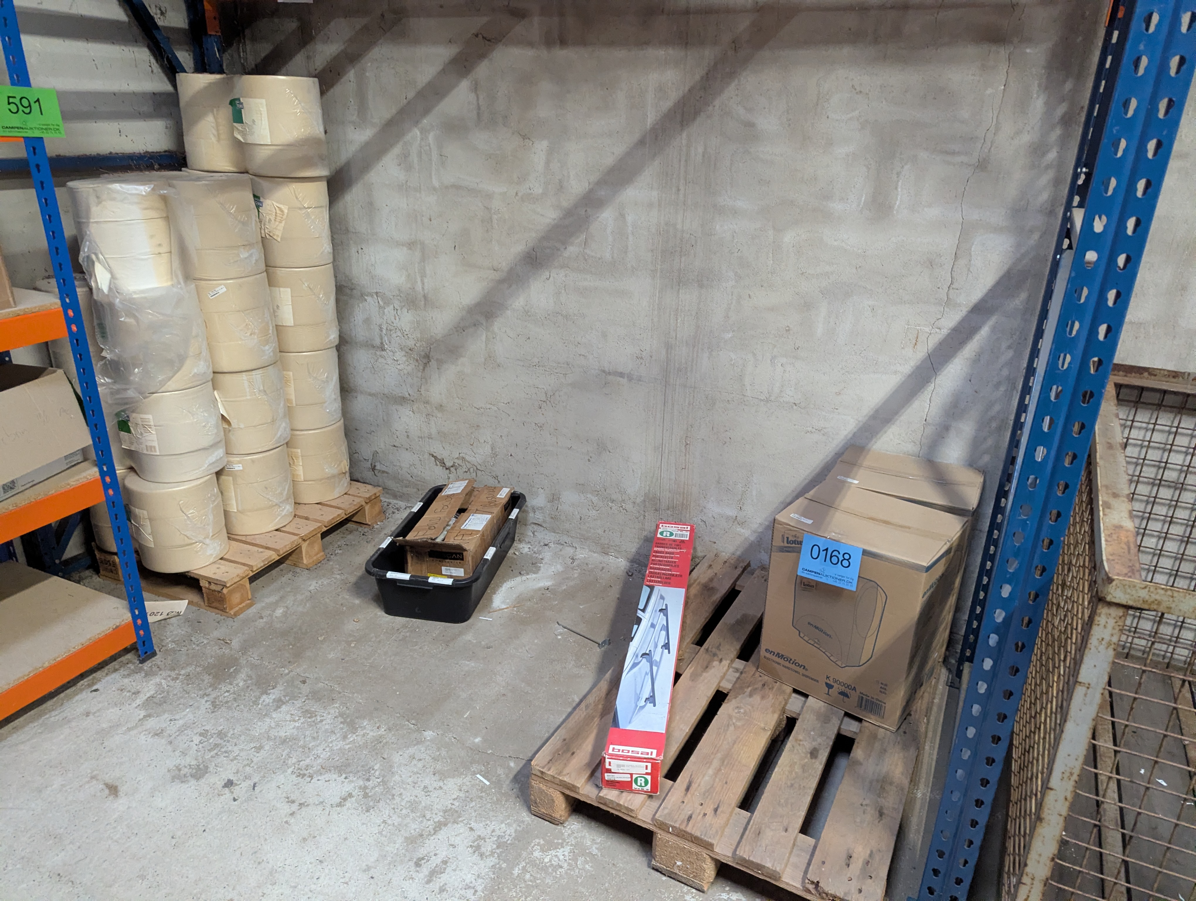 168. Oprydning under hylde bl.a. palle med papirer