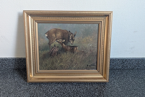 Maleriet forestiller rådyr.