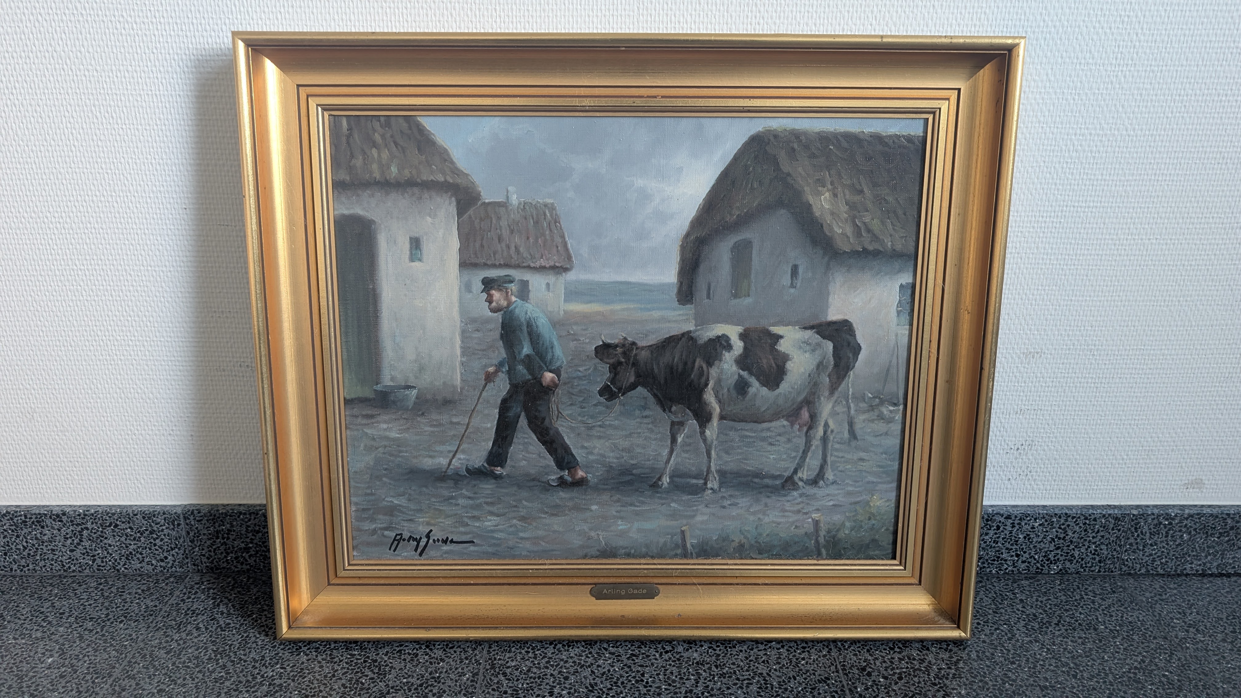 Maleriet forestiller en bonde med en ko