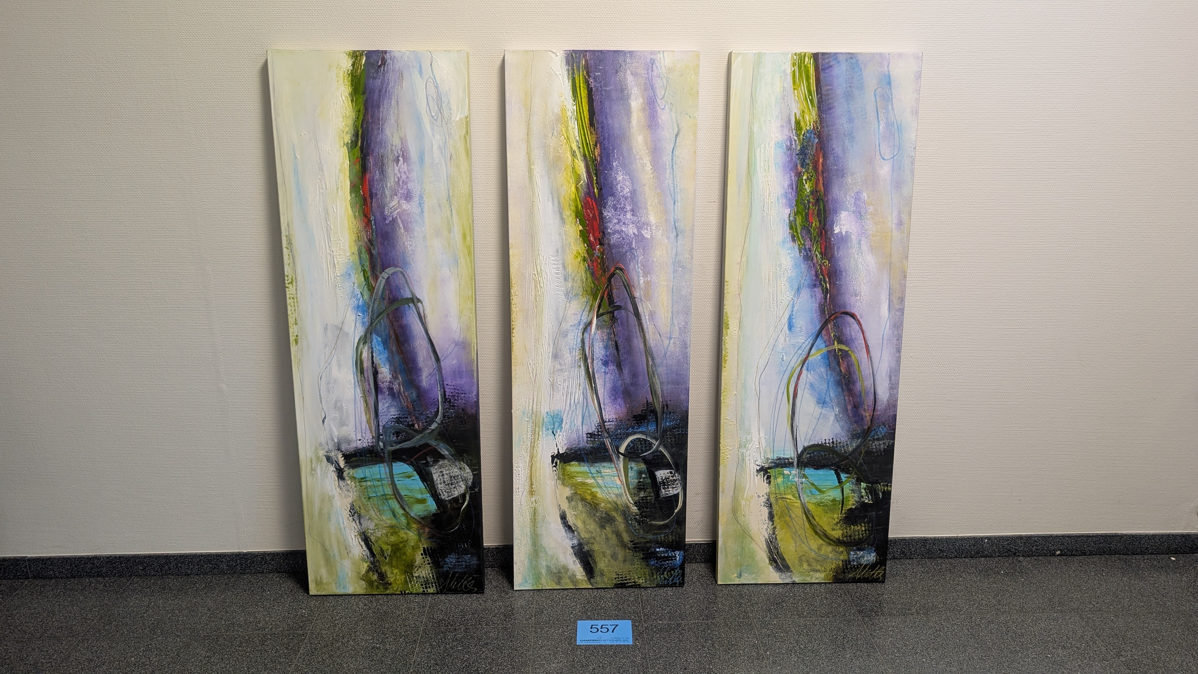 557. 3 stk. billeder på lærred