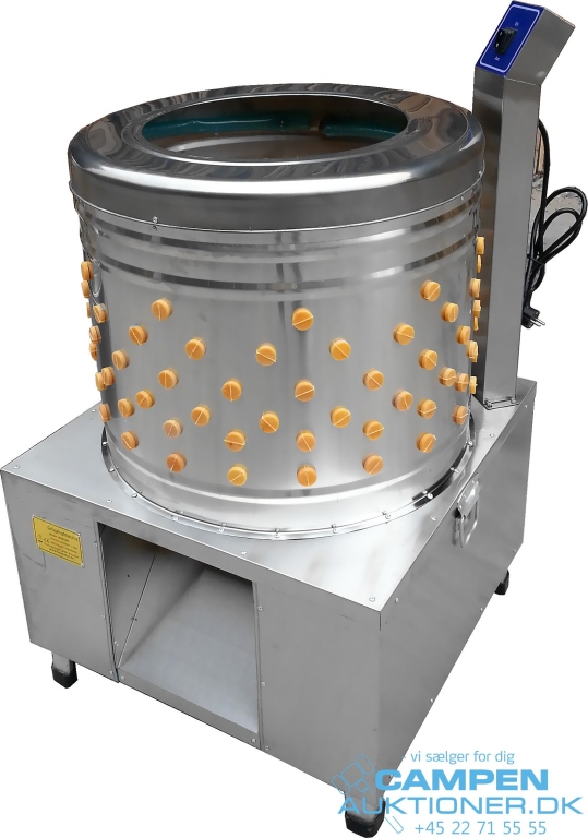 Fjerkræsplukker, kvalitetsmaskine. Den er udstyret med 180 fingre og kan plukke op til 540 kg i timen. Tøndens diameter er 60 cm og den er udstyret med vandtilførsel. Egner sig perfekt til lille landbrug, jæger, hobbyopdrætter osv. Vægt 60 kg. Ubrugt vare.