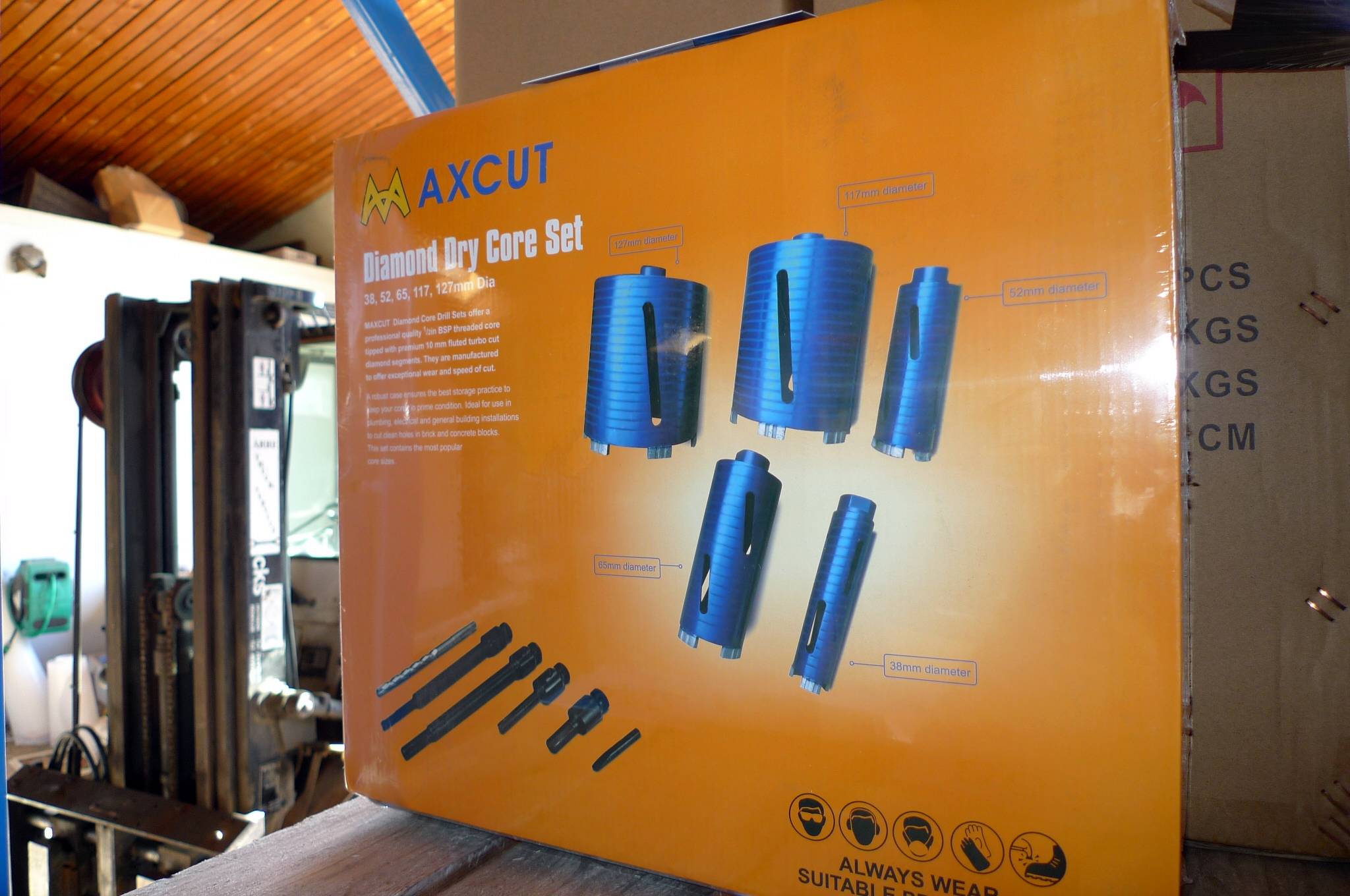 Diamantborsæt, Maxcut. 38, 52, 65, 117 og 127 mm. Ubrugt.