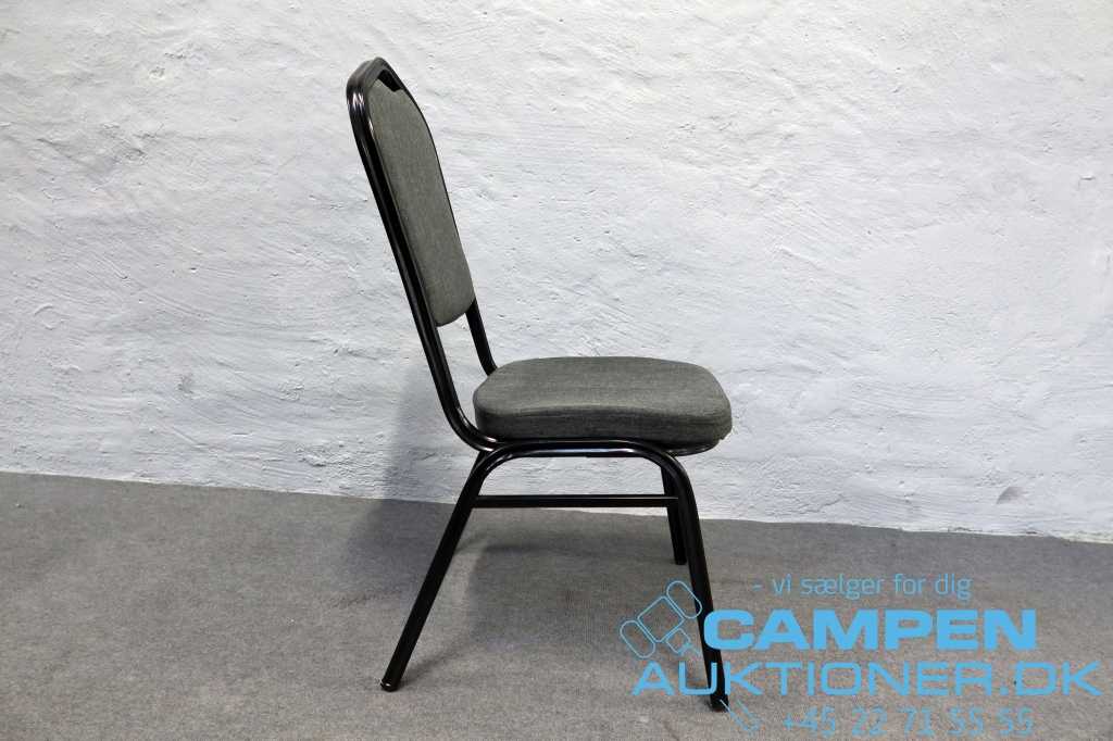 24 stk. banquet stole. Ubrugte. Polstrede og betrukket med gråt stof. Stabelbare. Mål, ca.: Stolehøjde 94 cm, siddehøjde 44 cm, sædedybde 41 cm og sædebredde 40 cm. Står i kælderen. Udlevering sker på den store parkeringsplads.