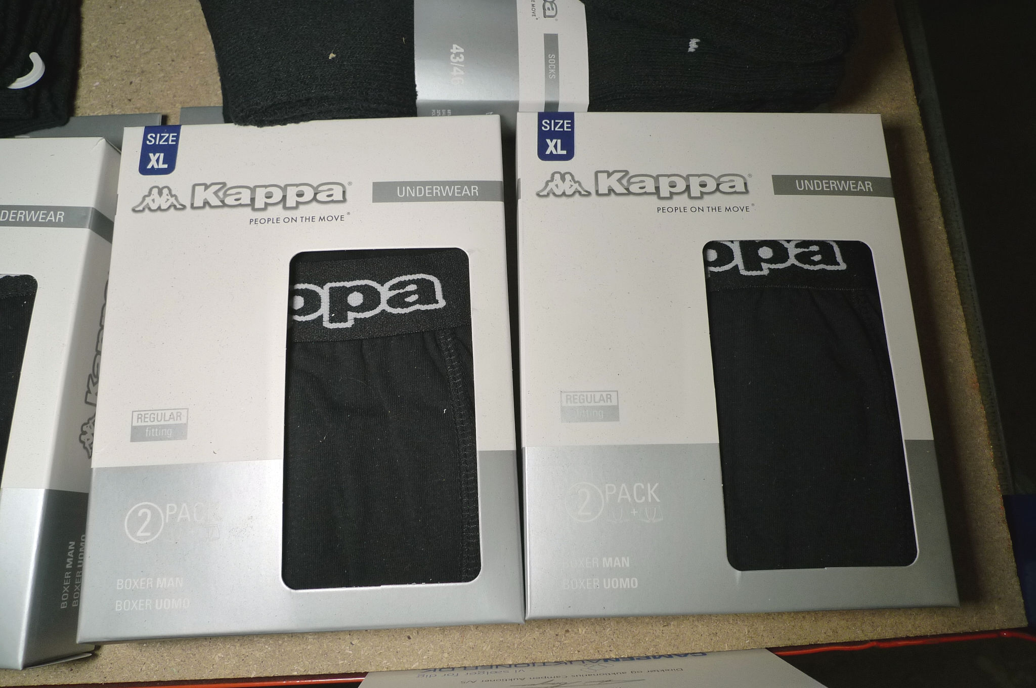 4 par boksershorts str. XL, 9 par sokker str. 43-46. Ubrugt.