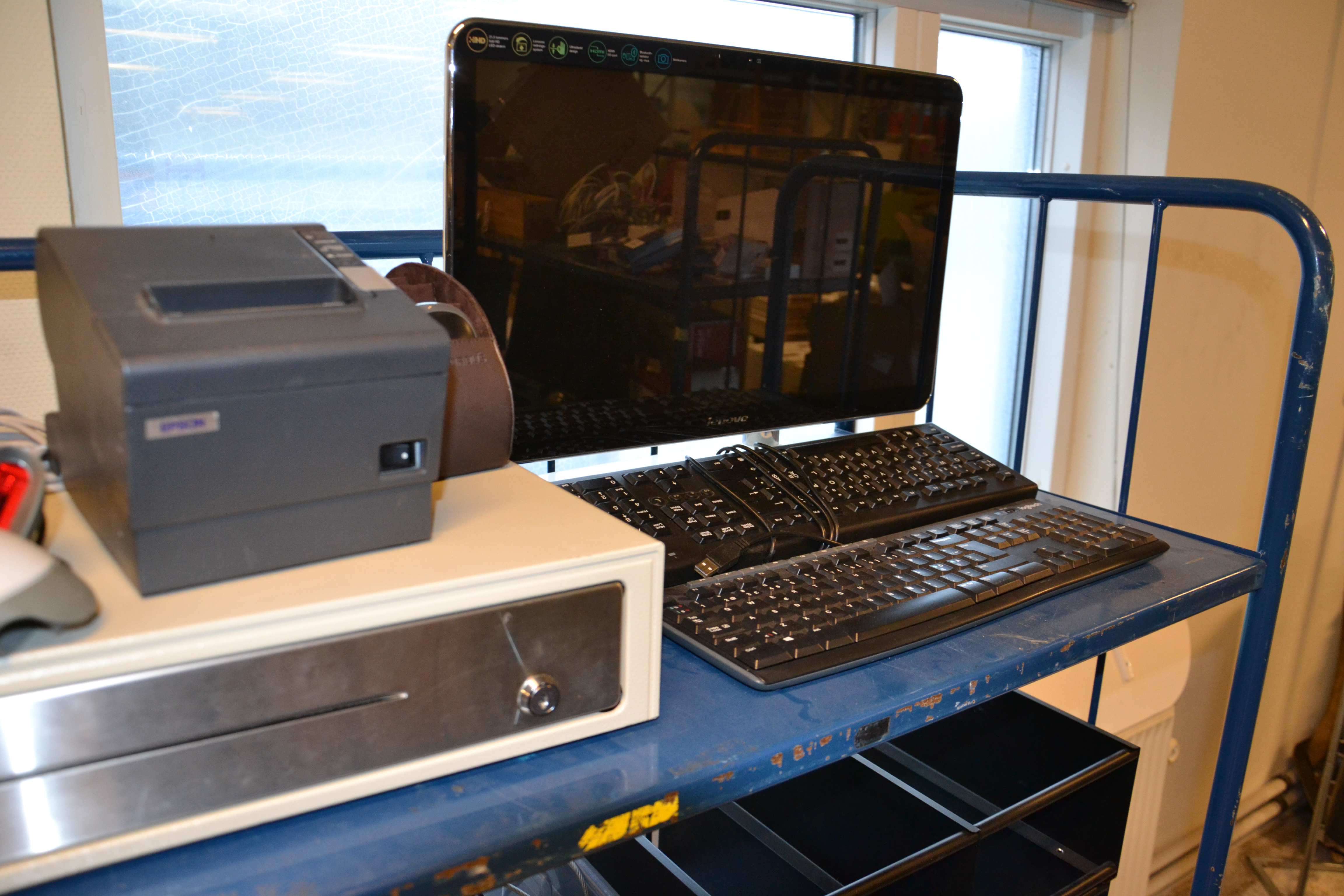 Tøm hylden bla. strømforsyninger, skærm og tastaturer