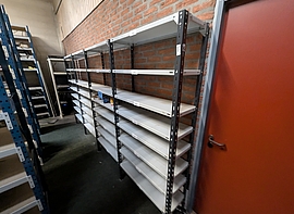 Fra kataloget kan nævnes: På auktionen finder du et bredt udvalg af reoler, rulleborde, kasseline, stiger m.m.