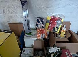 Fra kataloget kan nævnes: Auktionen indeholder masser af større oprydningslot samt diverse værktøslots, reservedele, eletronik, kølevæske, tagbokse og mange andre spændende effekter.