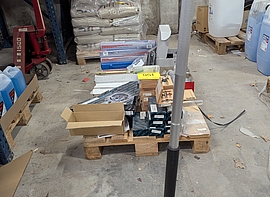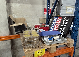 På auktionen er der et hav af forskellige effekter bl.a. 40 fods container, stort parti dele til dækmaskiner, partier med håndværktøj, reservedele, ubrugte Jerry Cans, trommelpumper, ventiler m.m. til dækskifte, paller med ass. filter og meget mere