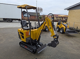 På auktionen sælges 2 modeller af gravemaskiner, 2 modeller af skridstyret minilæsser, samt mobilbører - alle med dieselmotor. Samt generatorer og værkstedvogne.