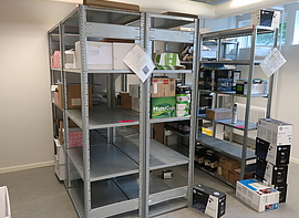 Fra kataloget kan nævnes: Samsung 65" med fjernbetjening, Hæve/sænkeborde, HÅG kontorstole, Epson laserprojector, lagerreoler med og uden indhold, hvide kitler og meget andet.
